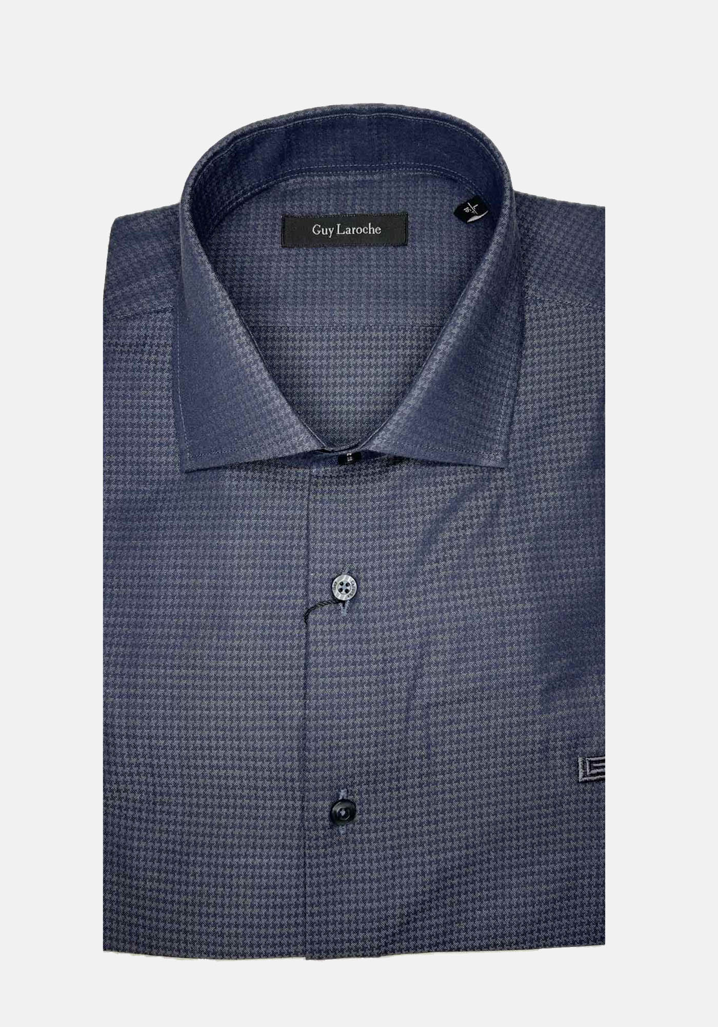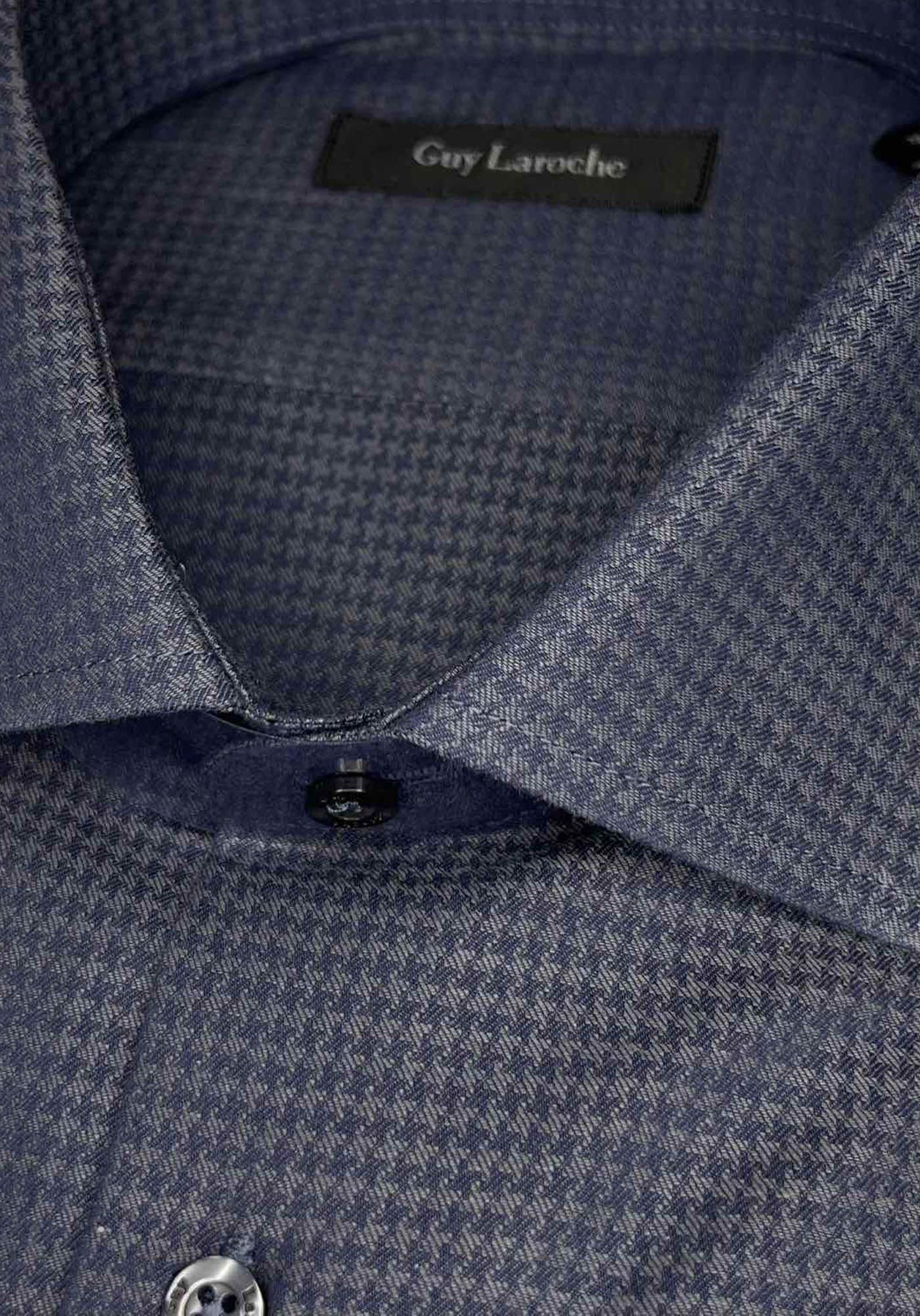 Ανδρικό Πουκάμισο της εταιρείας Guy Laroche. Ανήκει στην Micro συλλογή της εταιρείας και είναι σε άνετη γραμμή, από απαλό ύφασμα υψηλής ποιότητας. Δακοσμείται με print σε επαναλαμβανόμενο μοτίβο και χαρακτηρίζεται από την μοναδική απαλή αίσθηση.