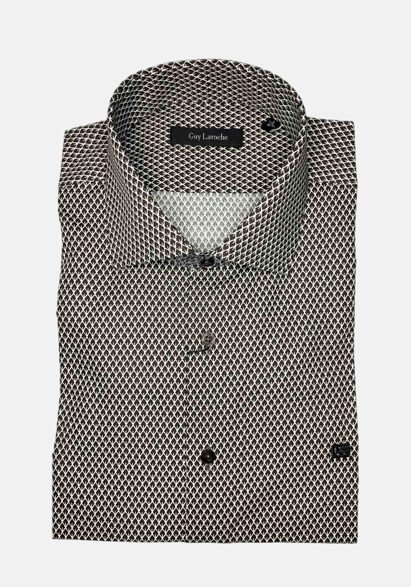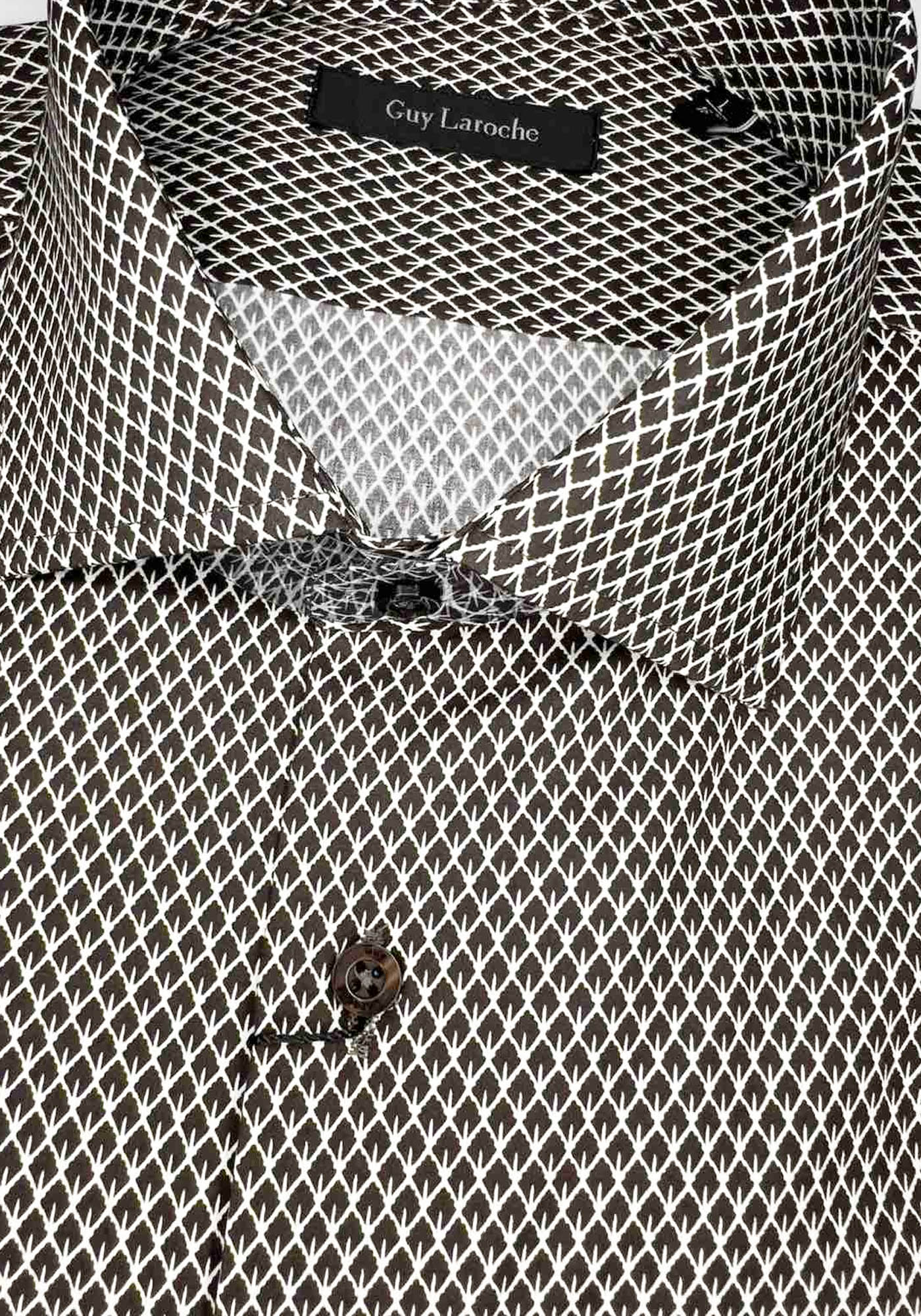 Ανδρικό Πουκάμισο της εταιρείας Guy Laroche. Ανήκει στην Micro συλλογή της εταιρείας και είναι σε άνετη γραμμή, από απαλό ύφασμα υψηλής ποιότητας. Δακοσμείται με print σε επαναλαμβανόμενο μοτίβο και χαρακτηρίζεται από την μοναδική απαλή αίσθηση.