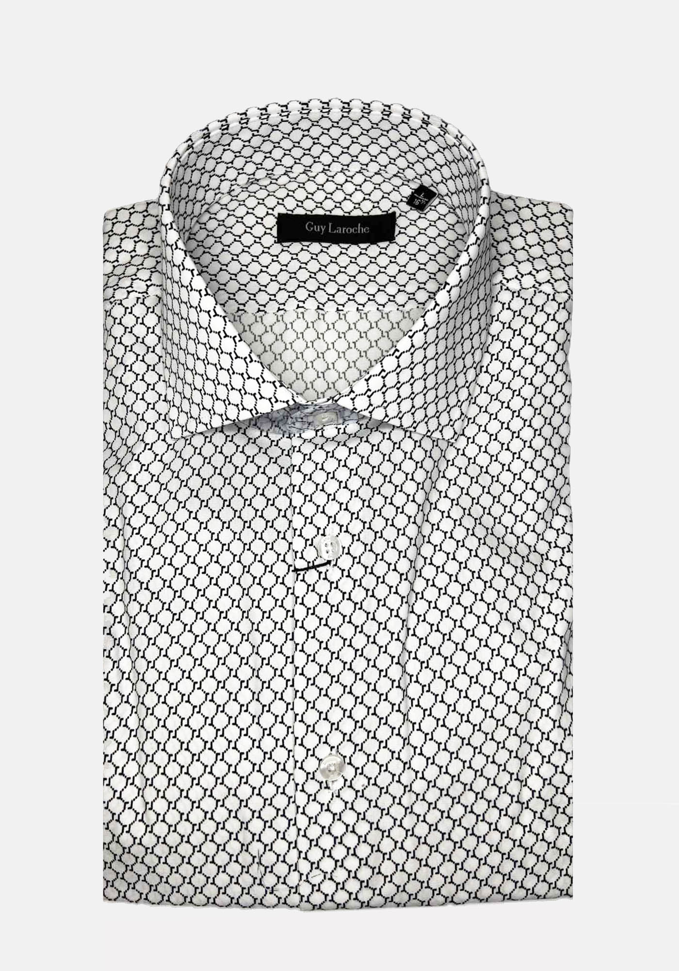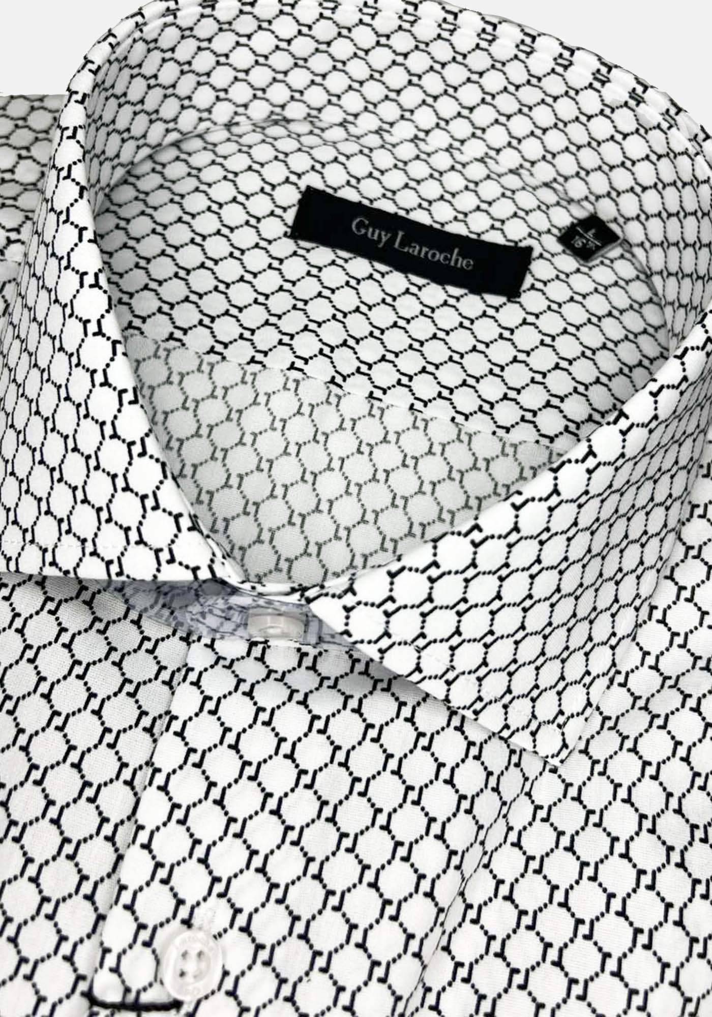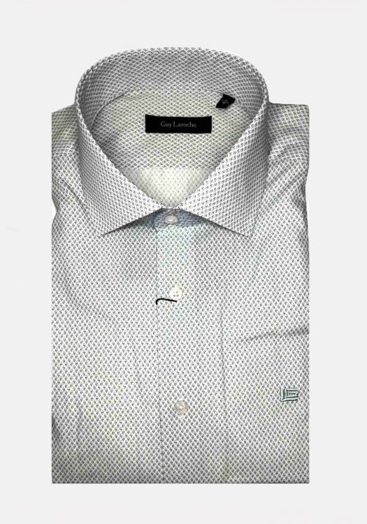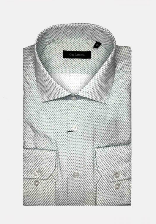 Ανδρικό Πουκάμισο της εταιρείας Guy Laroche. Ανήκει στην Micro συλλογή της εταιρείας και είναι σε άνετη γραμμή, από απαλό ύφασμα υψηλής ποιότητας. Δακοσμείται με print σε επαναλαμβανόμενο μοτίβο και χαρακτηρίζεται από την μοναδική απαλή αίσθηση.