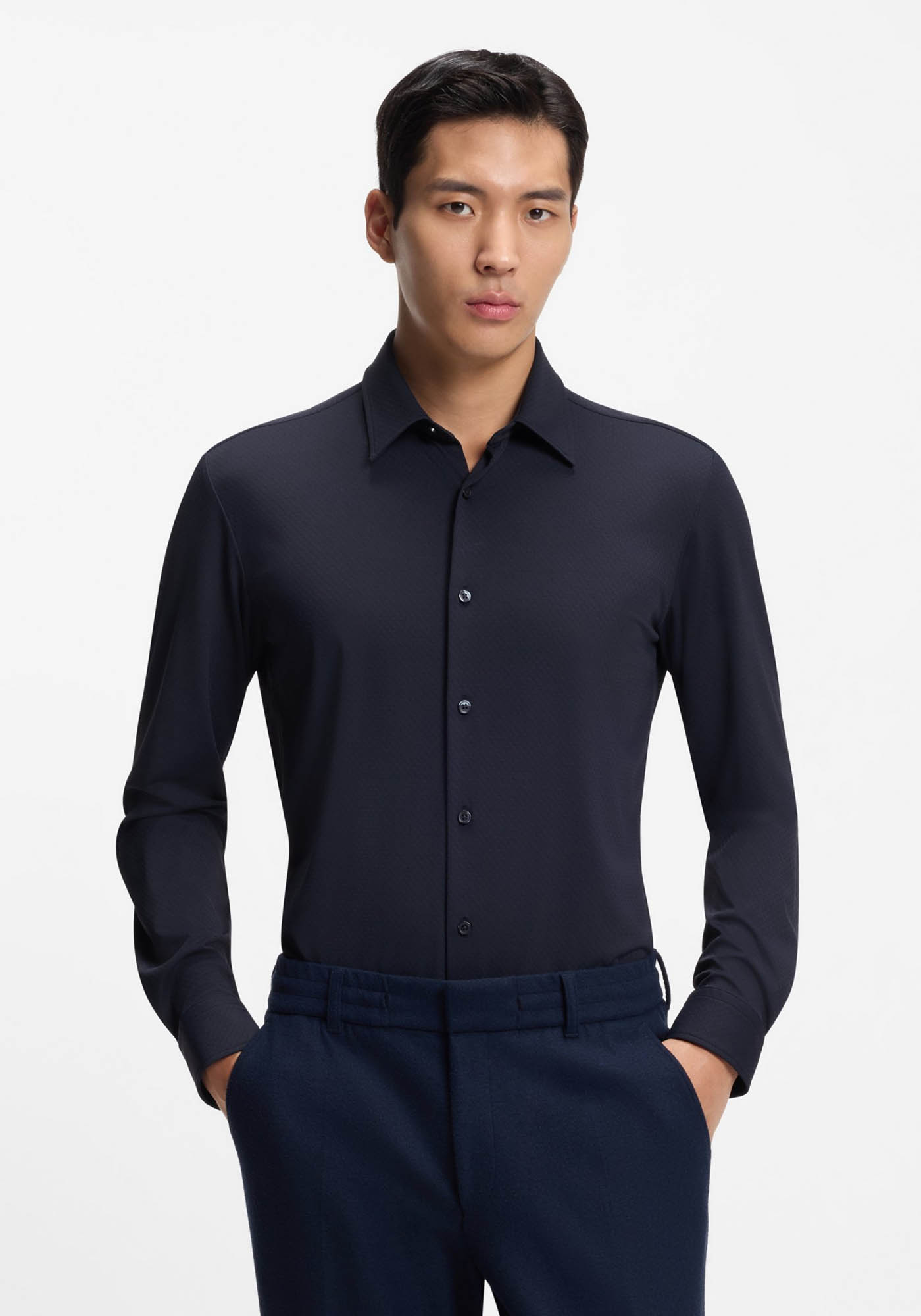 Ανδρικό πουκάμισο της εταιρείας BOSS. Ανήκει στην H Roan συλλογή της εταιρείας, και έχει σαν χαρακτηριστικό το print στην ύφανσή του. Είναι σε Slim γραμμή, από ύφασμα υψηλής ποιότητας και αγκαλίαζει άψογα το κορμί.