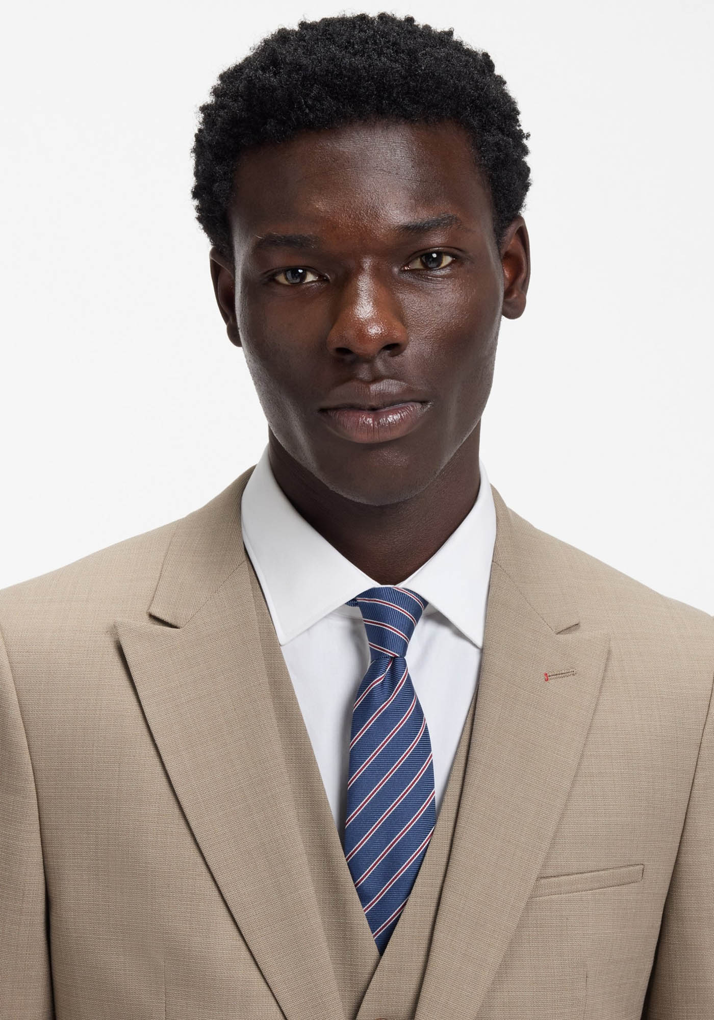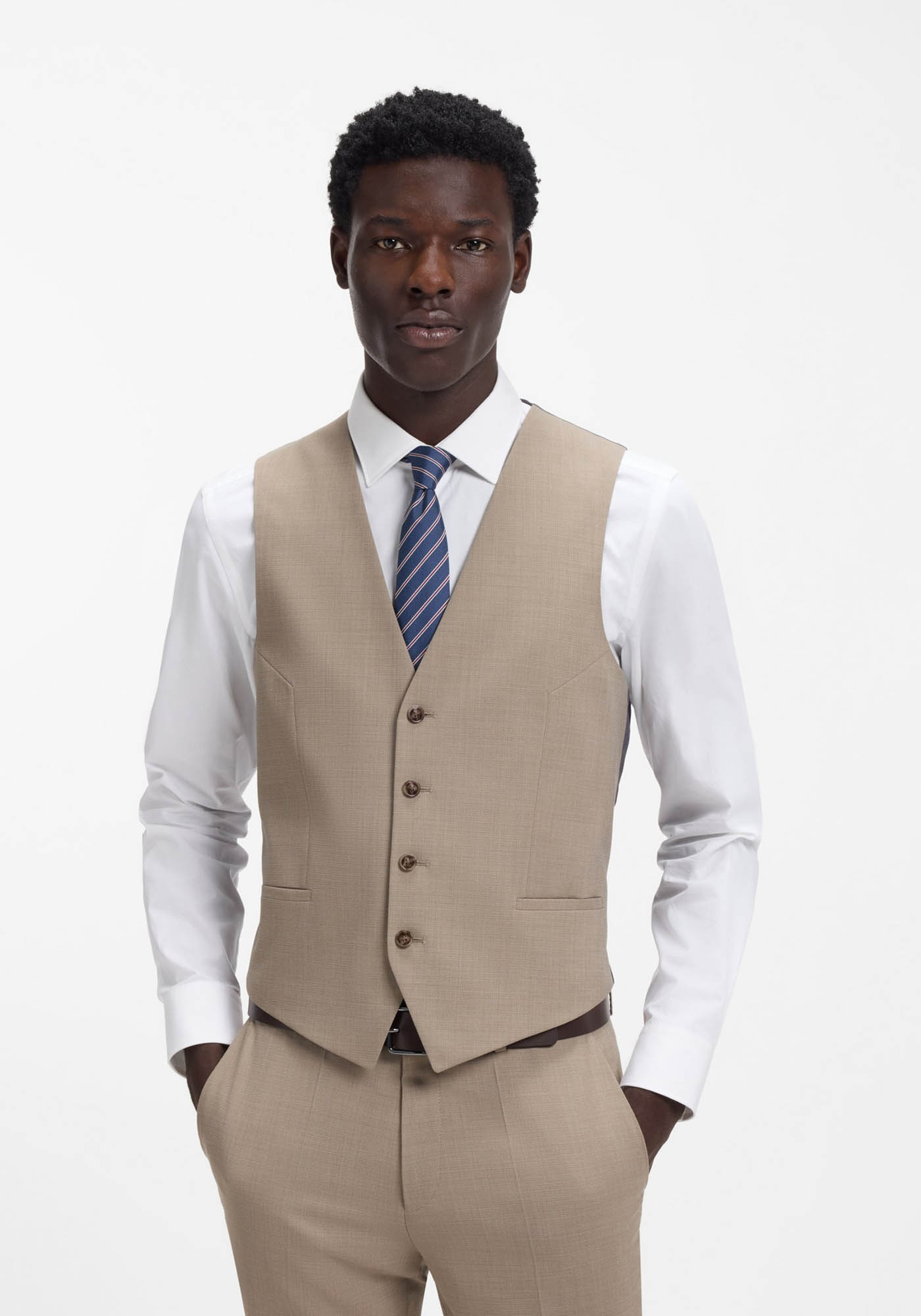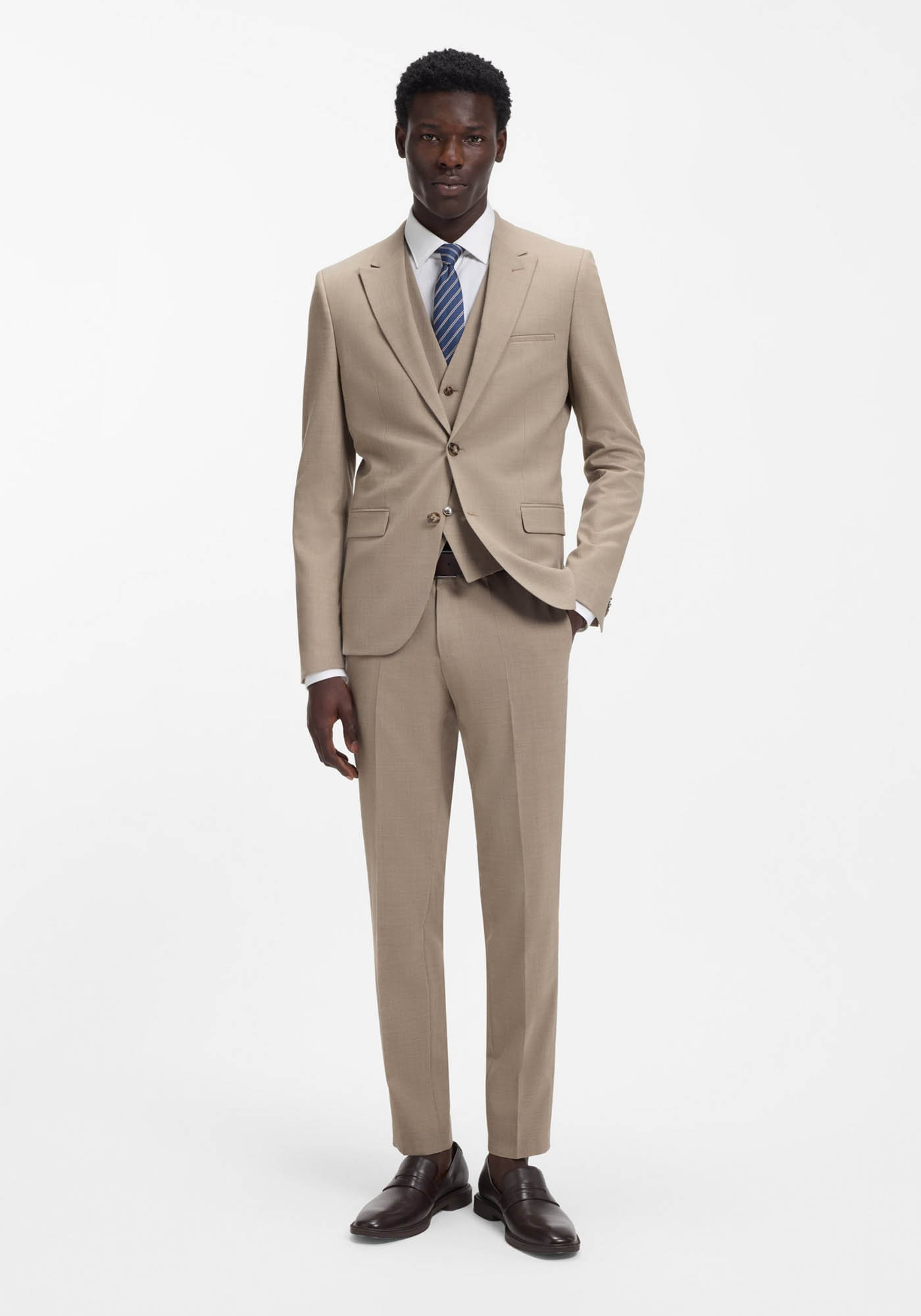 - Three-piece extra-slim-fit suit in stretch dobby