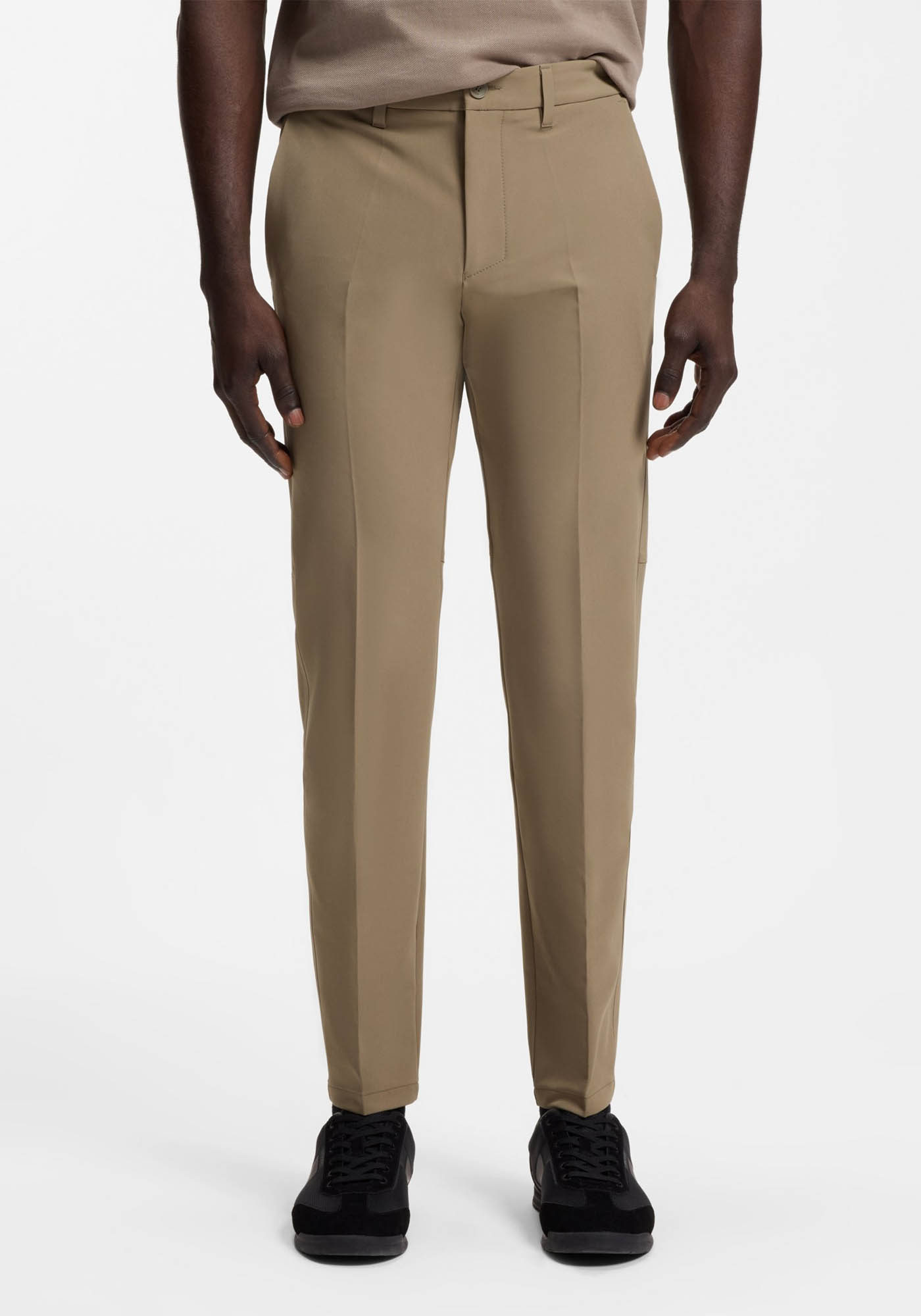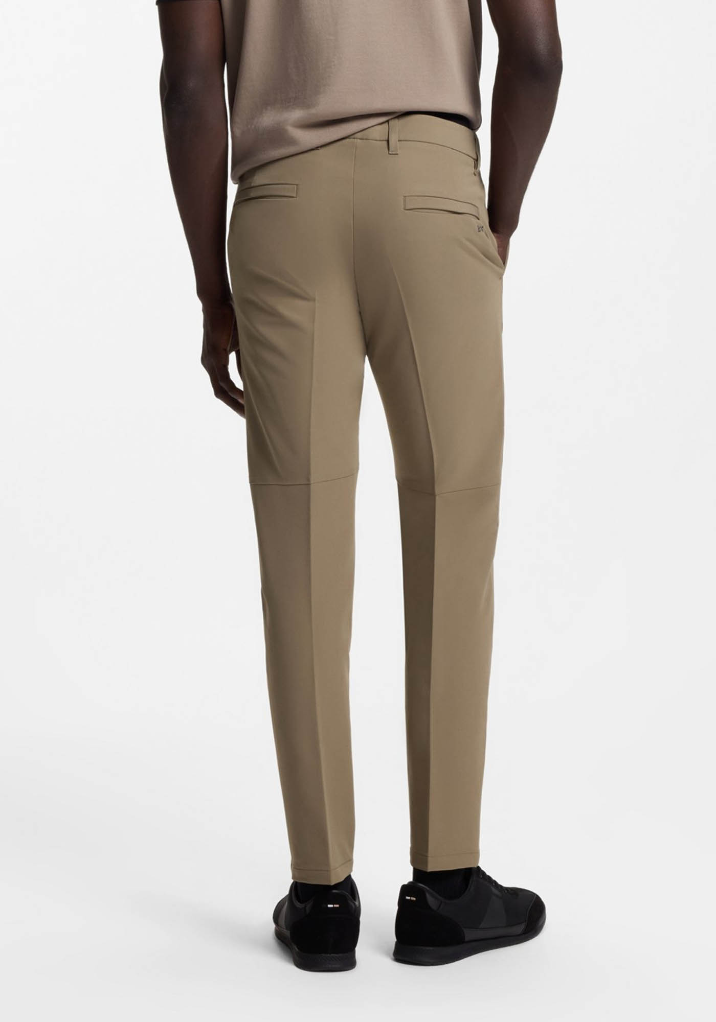 Aνδρικό Παντελόνι της εταιρείας Boss. Ανήκει στην Commuter συλλογή της εταιρείας και αποτελείται από μαλακό ύφασμα υψηλής ποιότητας. Είναι μονόχρωμο και σε στενή γραμμή, ενώ το λογότυπο το διακοσμεί στο πίσω μέρος.