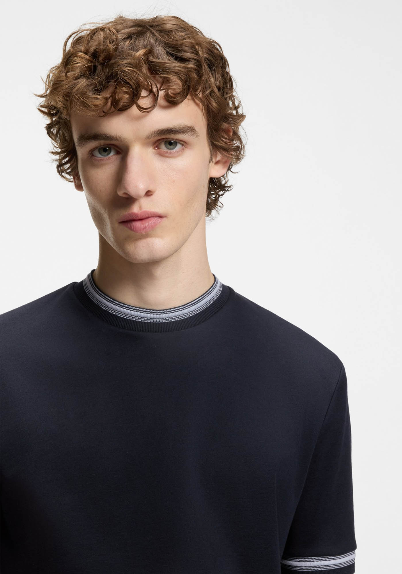 - Contrast-tipping slim-fit T-shirt in mercerised cotton