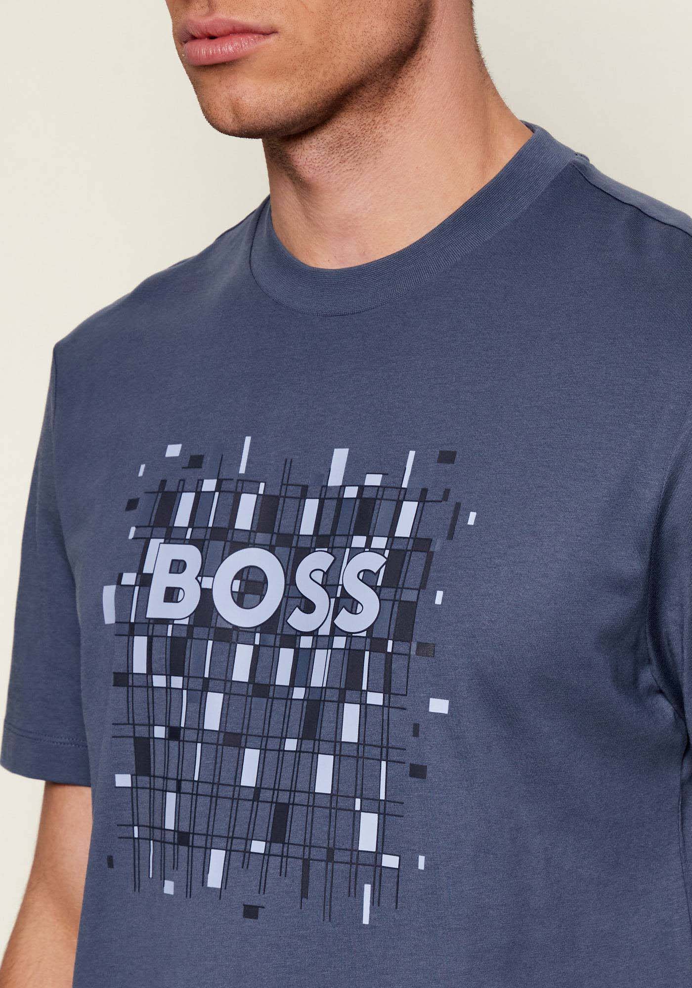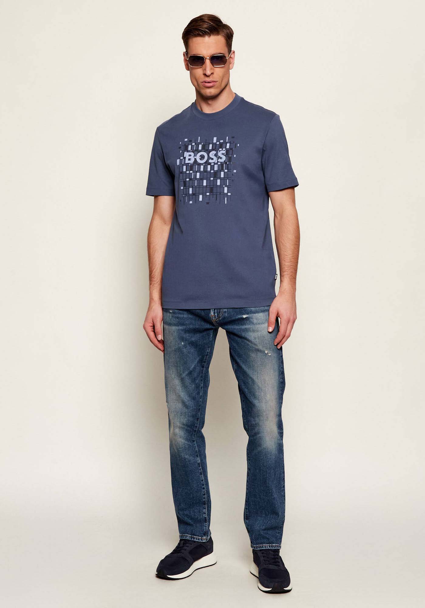 Ανδρική μπλούζα της εταιρείας BOSS. Ανήκει στην Thompson 250συλλογή της εταιρείας και χαρακτηρίζεται από τον άψογο σχεδιασμό. Είναι σε regular γραμμή, από απαλό ύφασμα υψηλής ποιότητας, ενώ διακοσμείται με print logo στο κέντρο.