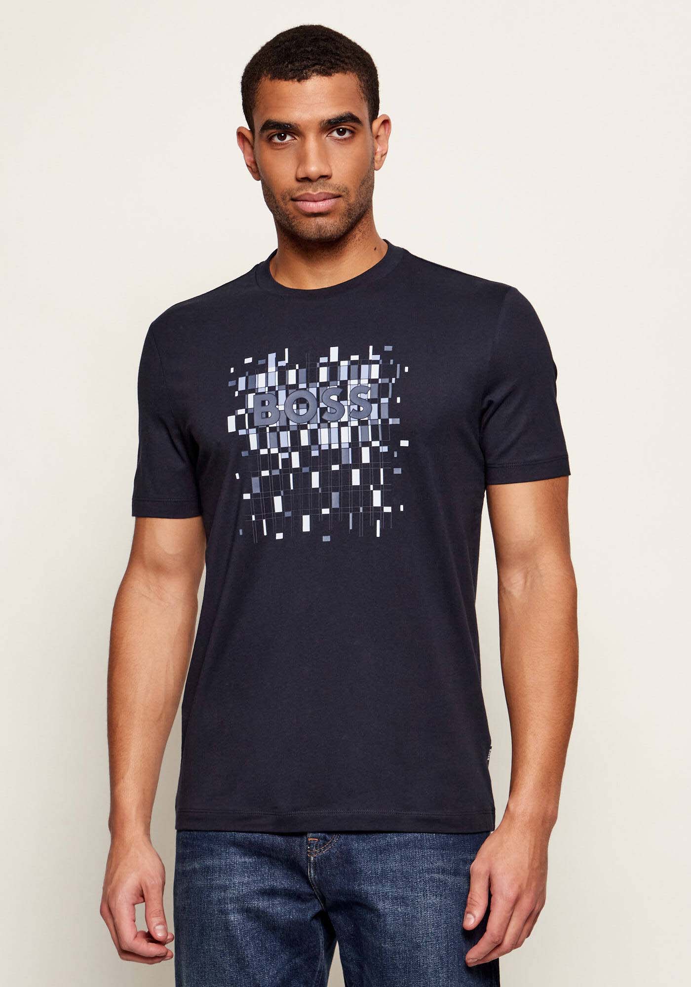 Ανδρική μπλούζα της εταιρείας BOSS. Ανήκει στην Thompson 250συλλογή της εταιρείας και χαρακτηρίζεται από τον άψογο σχεδιασμό. Είναι σε regular γραμμή, από απαλό ύφασμα υψηλής ποιότητας, ενώ διακοσμείται με print logo στο κέντρο.