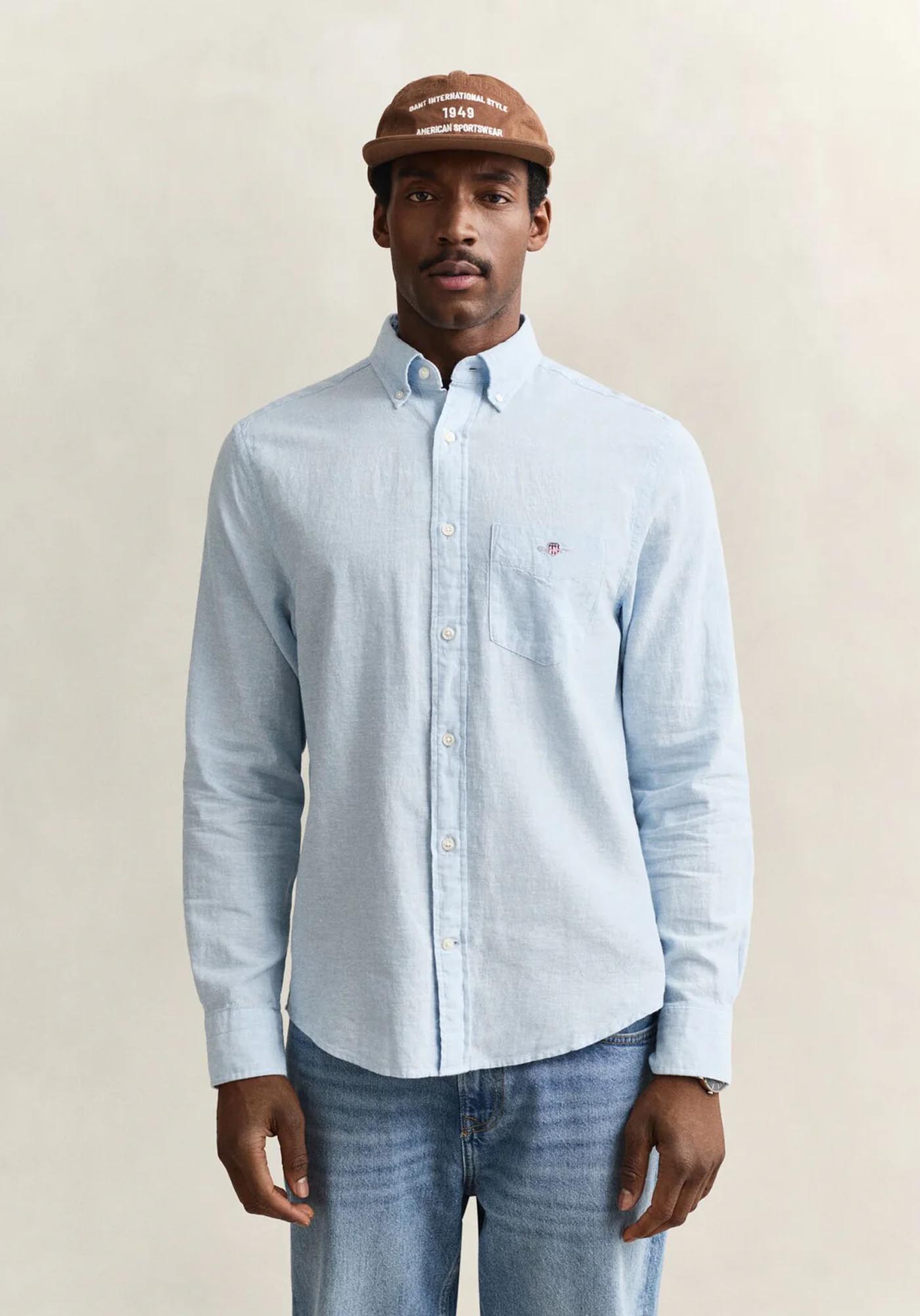 Ανδρικό Λινό πουκάμισο της εταιρείας GANT. Ανήκει στην Linen συλλογή της εταιρείας και χαρακτηρίζεται από τoν άψογο σχεδιασμό. Είναι σε κανονική γραμμή, ενώ είναι διακοσμημένο με τσέπη η οποία βρίσκεται στο ύψος του στήθους, πάνω στην οποία βρίσκεται κεντημένο το λογότυπο.