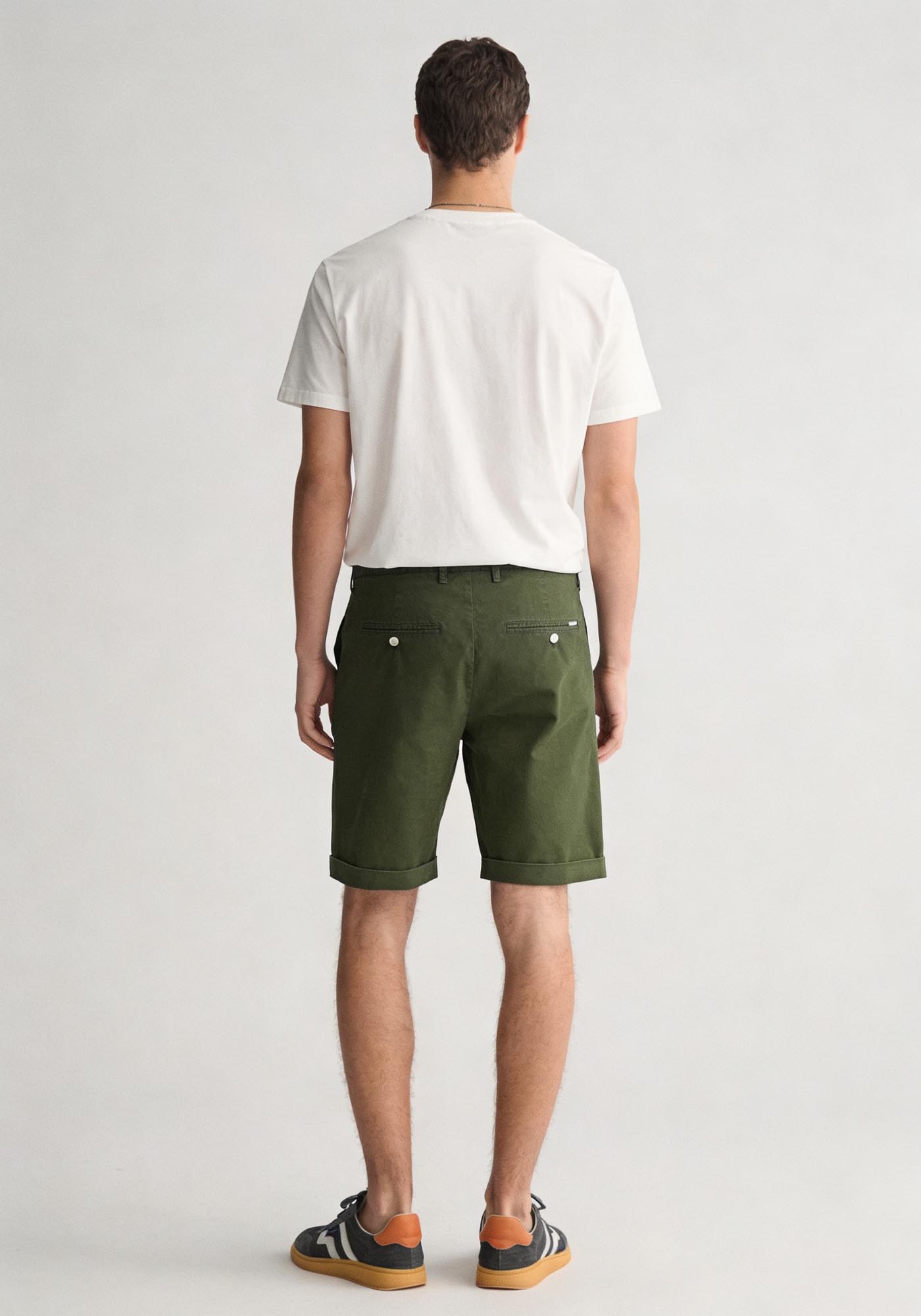 Aνδρική Βερμούδα της εταιρείας Gant. Ανήκει στην Twill συλλογή της εταιρείας και αποτελείται από μαλακό ύφασμα υψηλής ποιότητας. Είναι μονόχρωμη, σε slim γραμμή και διαθέτει τσέπες στο πλάι ενώ το λογότυπο είναι κεντημένο στο πίσω μέρος.