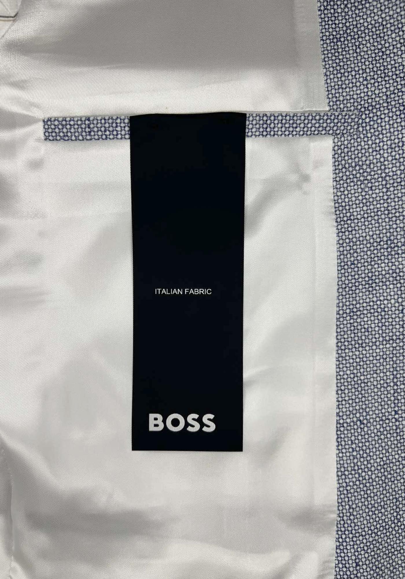 Ανδρικό Λινό Σακάκι της εταιρείας BOSS. Ανήκει στην Hutson συλλογή της εταιρείας και χαρακτηρίζεται από το μικροσχέδιο στην ύφανση του. Είναι δίκουμπο, με μικροσχέδιο και με ελαφριες βάτες στους ώμους δίνοντας την αίσθηση της κομψότητας. Στο πίσω μέρος υπάρχουν δύο ανοίγματα που δίνουν άνεση στην κίνηση σας. Διαθέτει τσέπη στο αριστερό στήθος και δύο μεσάτες τσέπες που κλείνουν με καπάκι. Τέλος, είναι ιδανική επιλογή για Casual και Επίσημες εμφανίσεις.