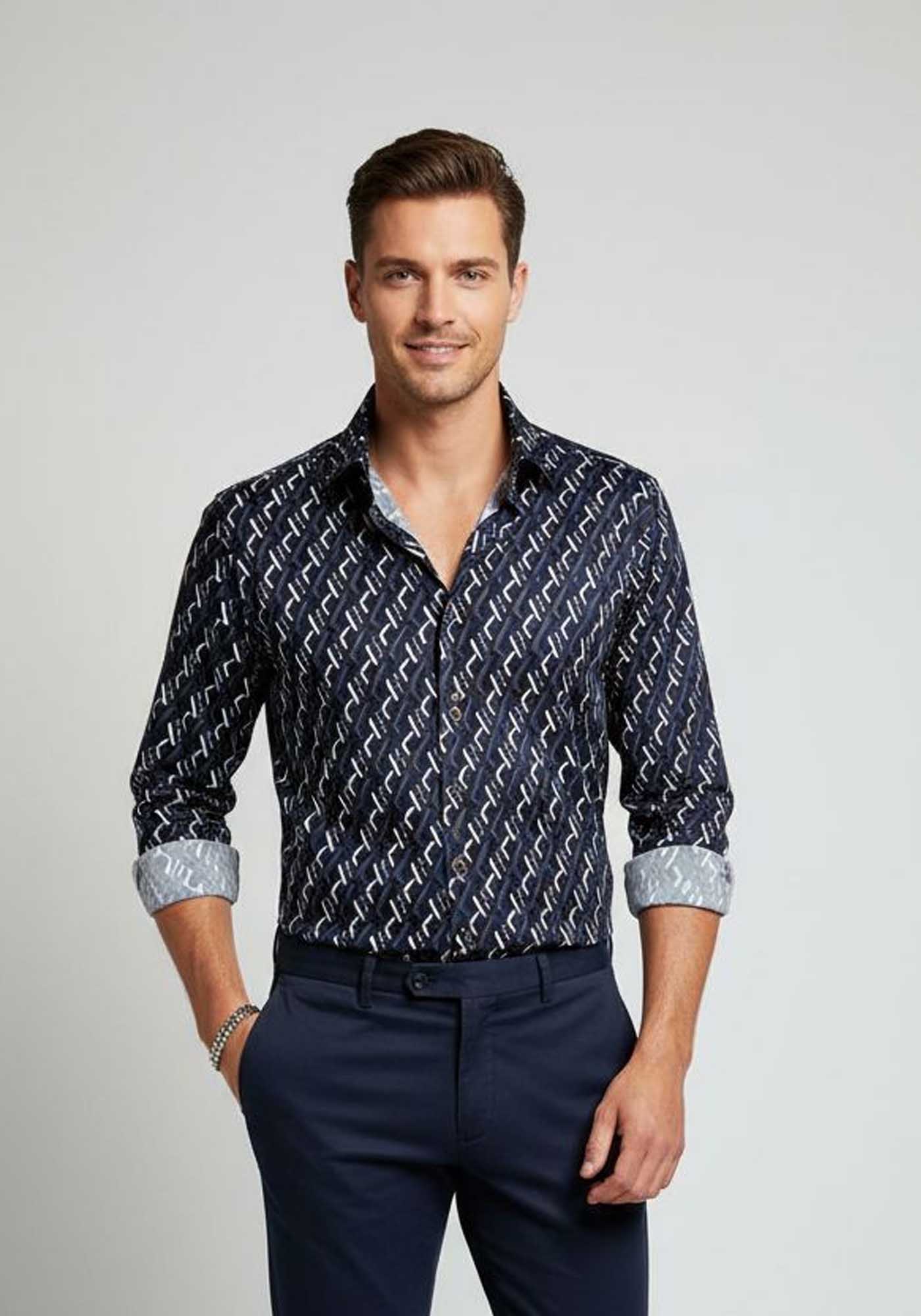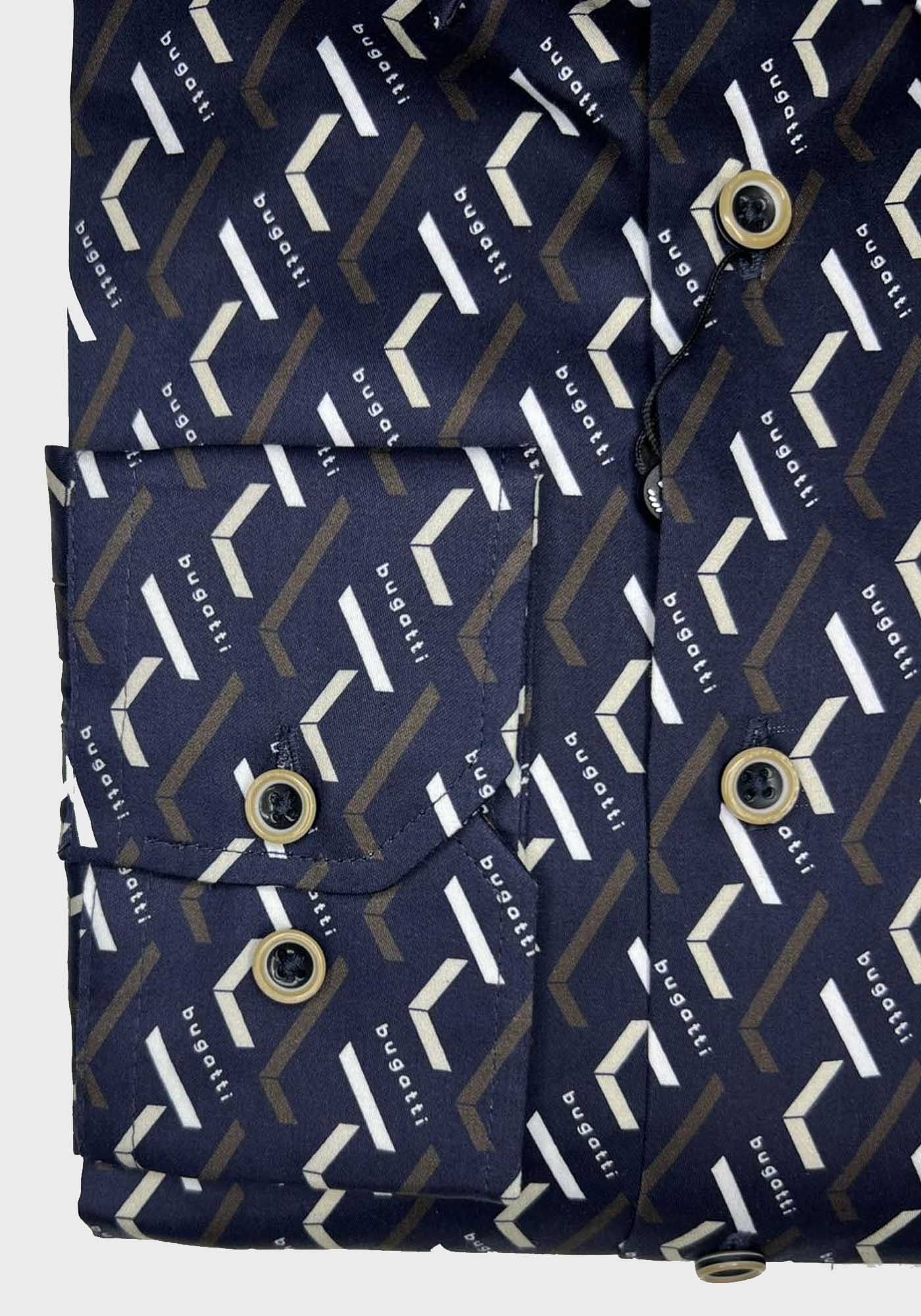 Ανδρικό πουκάμισο της εταιρείας Bugatti. Ανήκει στην Graphic συλλογή της εταιρείας και χαρακτηρίζεται από τον allover print σε όλη την έκτασή του. Είναι από άριστης ποιότητας ύφασμα και αγκαλιάζει άψογα το κορμί.