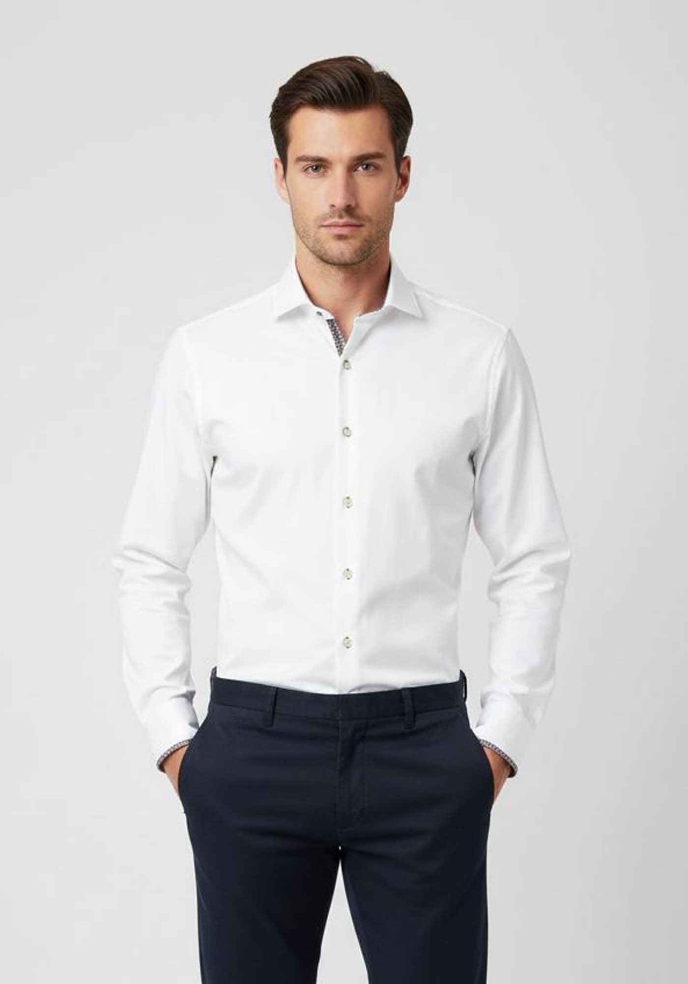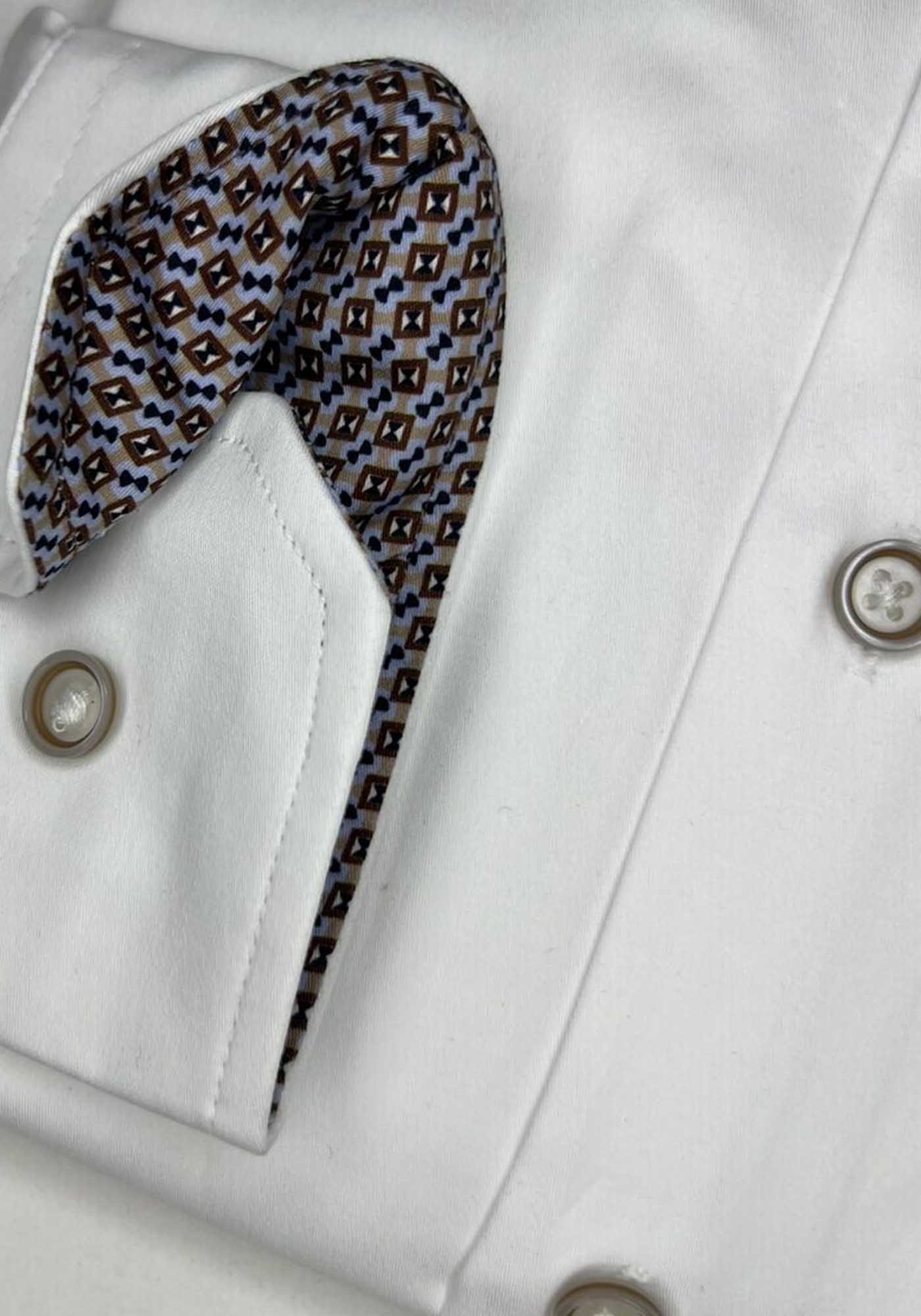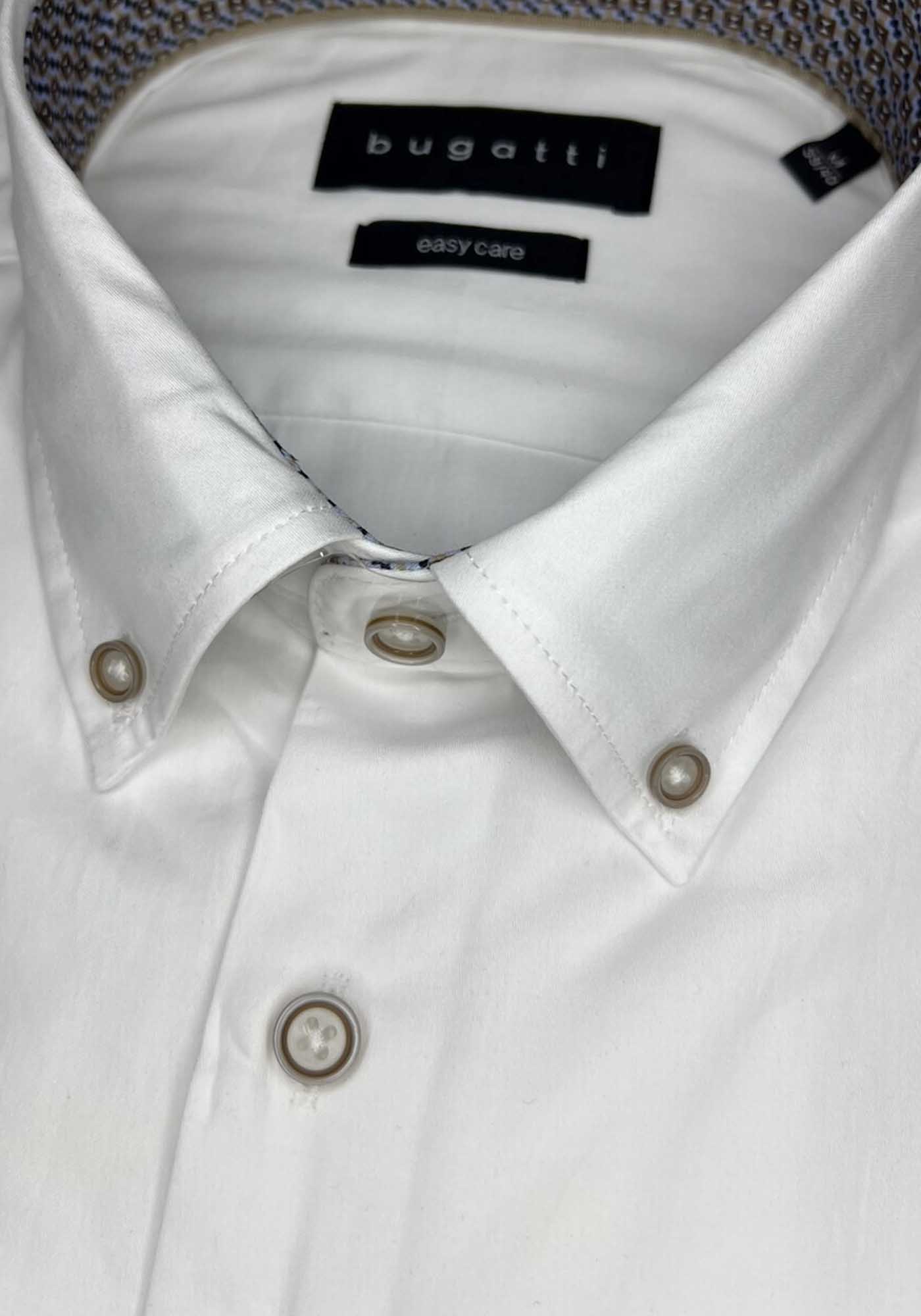 Ανδρικό πουκάμισο της εταιρείας Bugatti. Ανήκει στην Print συλλογή της εταιρείας και χαρακτηρίζεται από το print στο εσωτερικό του γιακά και των μανικιών. Είναι από άριστης ποιότητας ύφασμα και αγκαλιάζει άψογα το κορμί.