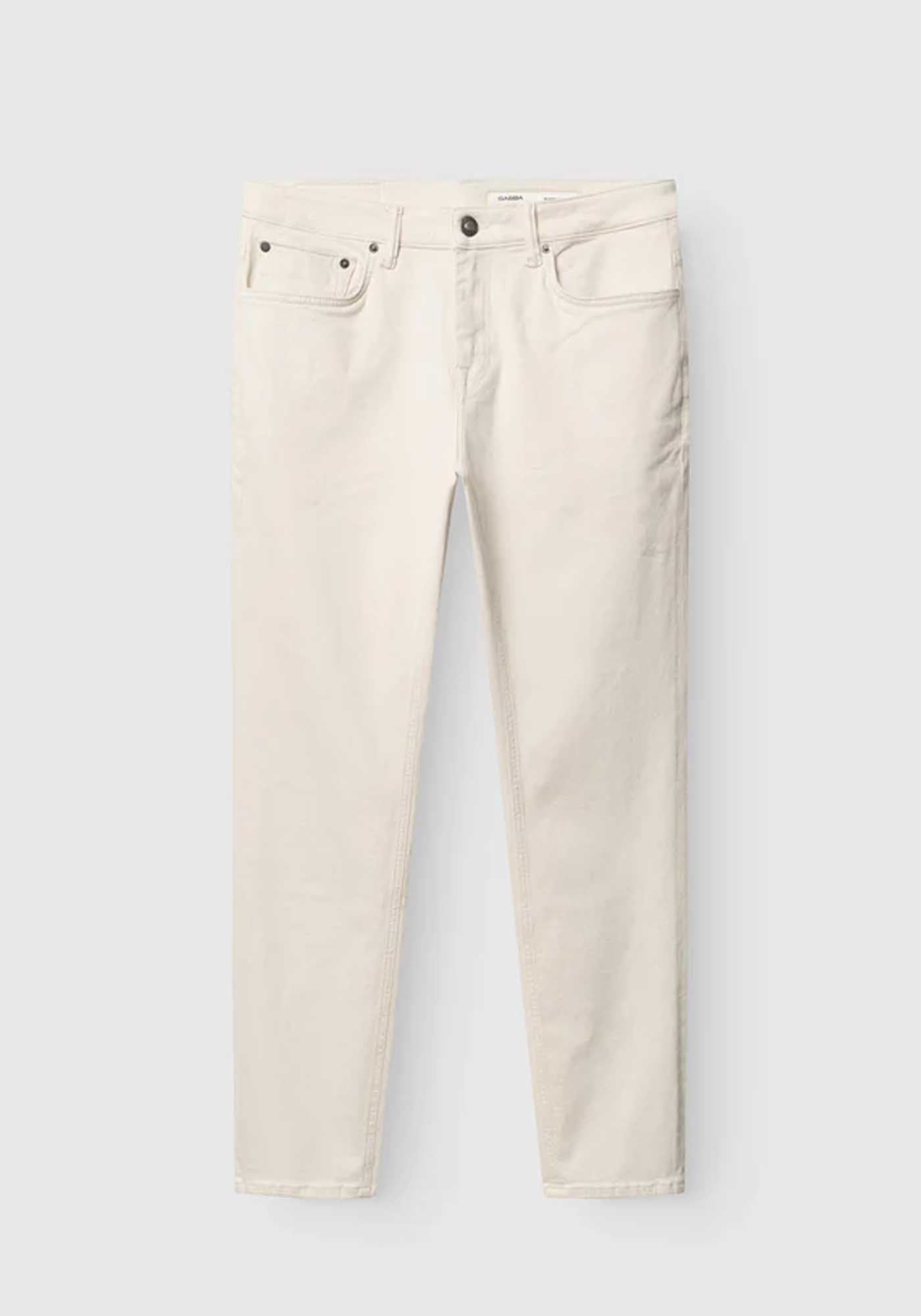 Ανδρικό παντελόνι της εταιρείας GABBA. Ανήκει στην GABjones συλλογή της εταιρείας και αποτελείται από μαλακό ύφασμα υψηλής ποιότητας. Είναι μονόχρωμο slim γραμμή και με το λογότυπο είναι χαραγμένο στο πίσω μέρος πάνω στην δερμάτινη επένδυση.