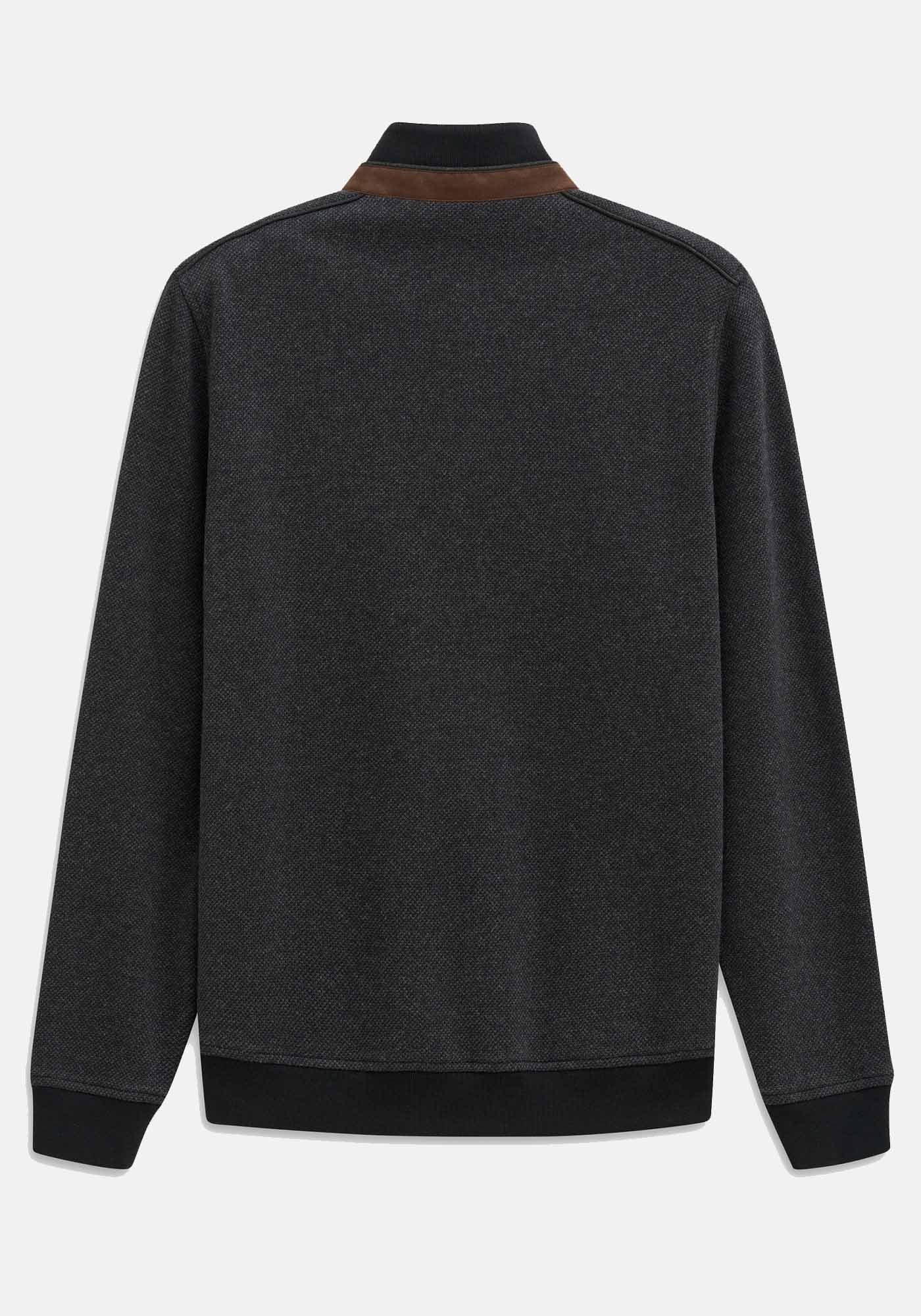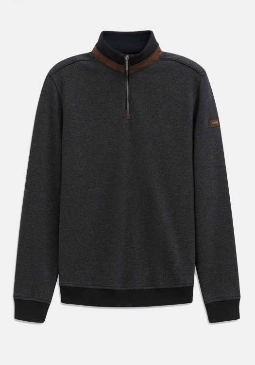 Ανδρική μπλούζα της εταιρείας Bugatti. Aνήκει στην Troyer συλλογή και είναι σε modern γραμμή, από απαλό ύφασμα. Είναι μονόχρωμη, με stand up γιακά που προκαλεί διχρωμία στο τέλος του μανικιού ,της μπούζας καθώς και του γιακά. Tέλος διαθέτει half zip λαιμόκοψη, αλλά και λάστιχο σε μανίκια και μέση για σταθερό κράτημα.