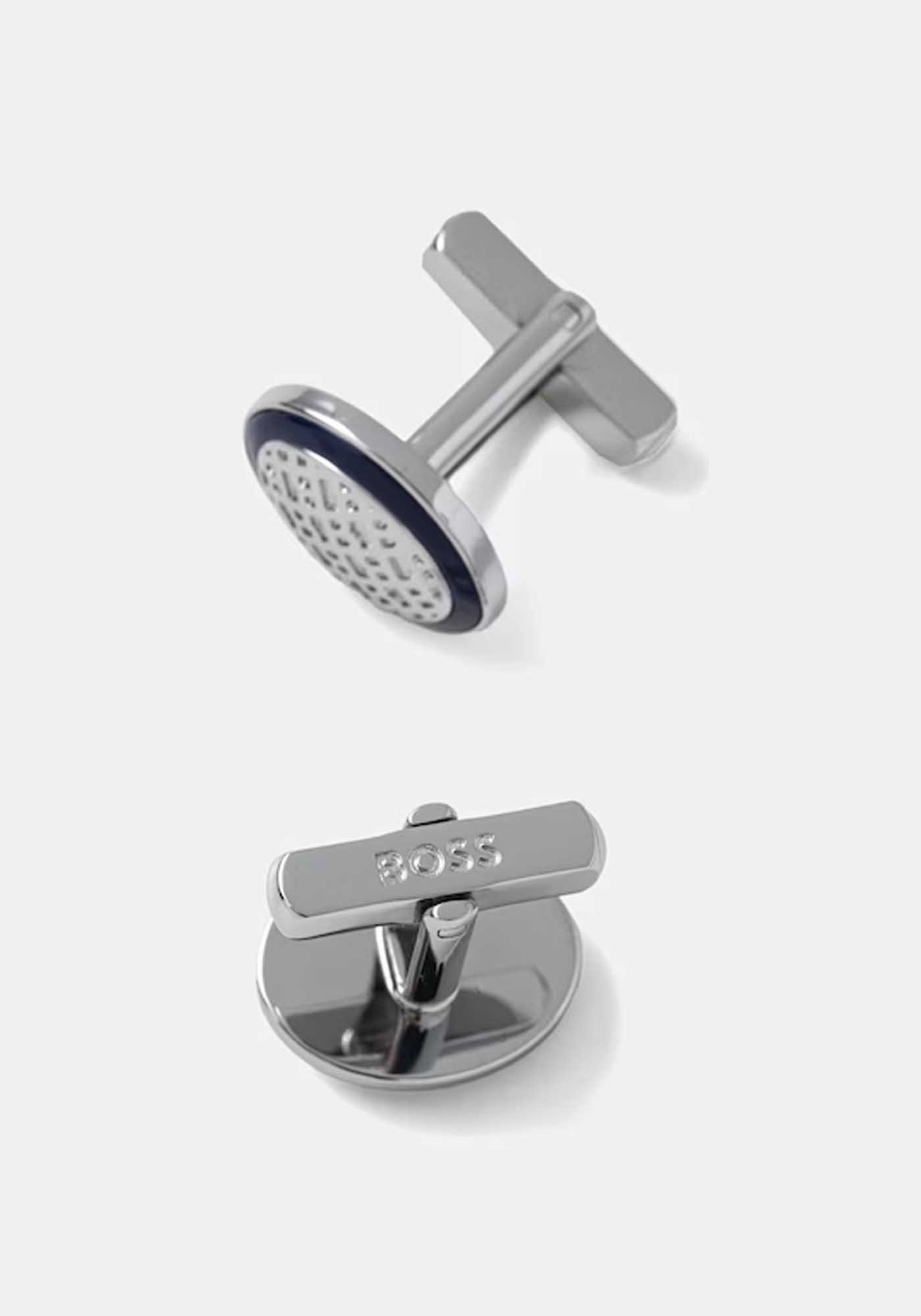 Τετράγωνα μανικετόκουμπα από την εταιρεία BOSS. Eίναι από 100% ατσάλι, ενώ είναι διακοσμημένα με το το λογότυπο το οποίο είναι χαραγμένο στο κέντρο.