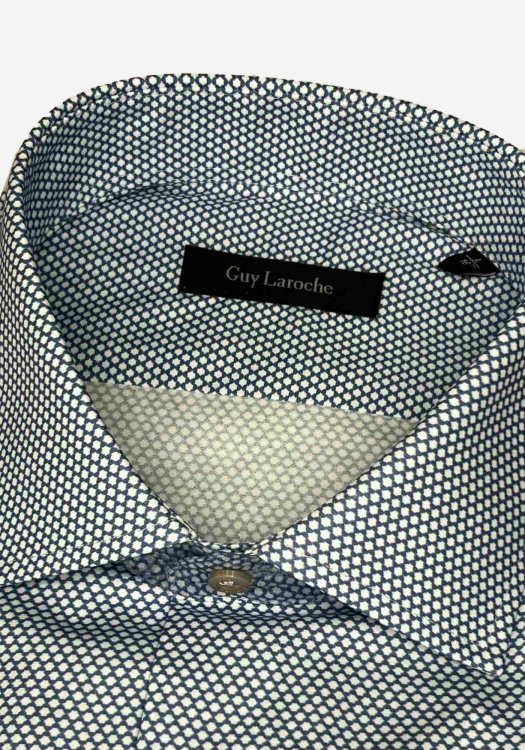 Ανδρικό Πουκάμισο της εταιρείας Guy Laroche. Ανήκει στην Micro συλλογή της εταιρείας και είναι σε άνετη γραμμή, από απαλό ύφασμα υψηλής ποιότητας. Δακοσμείται με print σε επαναλαμβανόμενο μοτίβο και χαρακτηρίζεται από την μοναδική απαλή αίσθηση.
