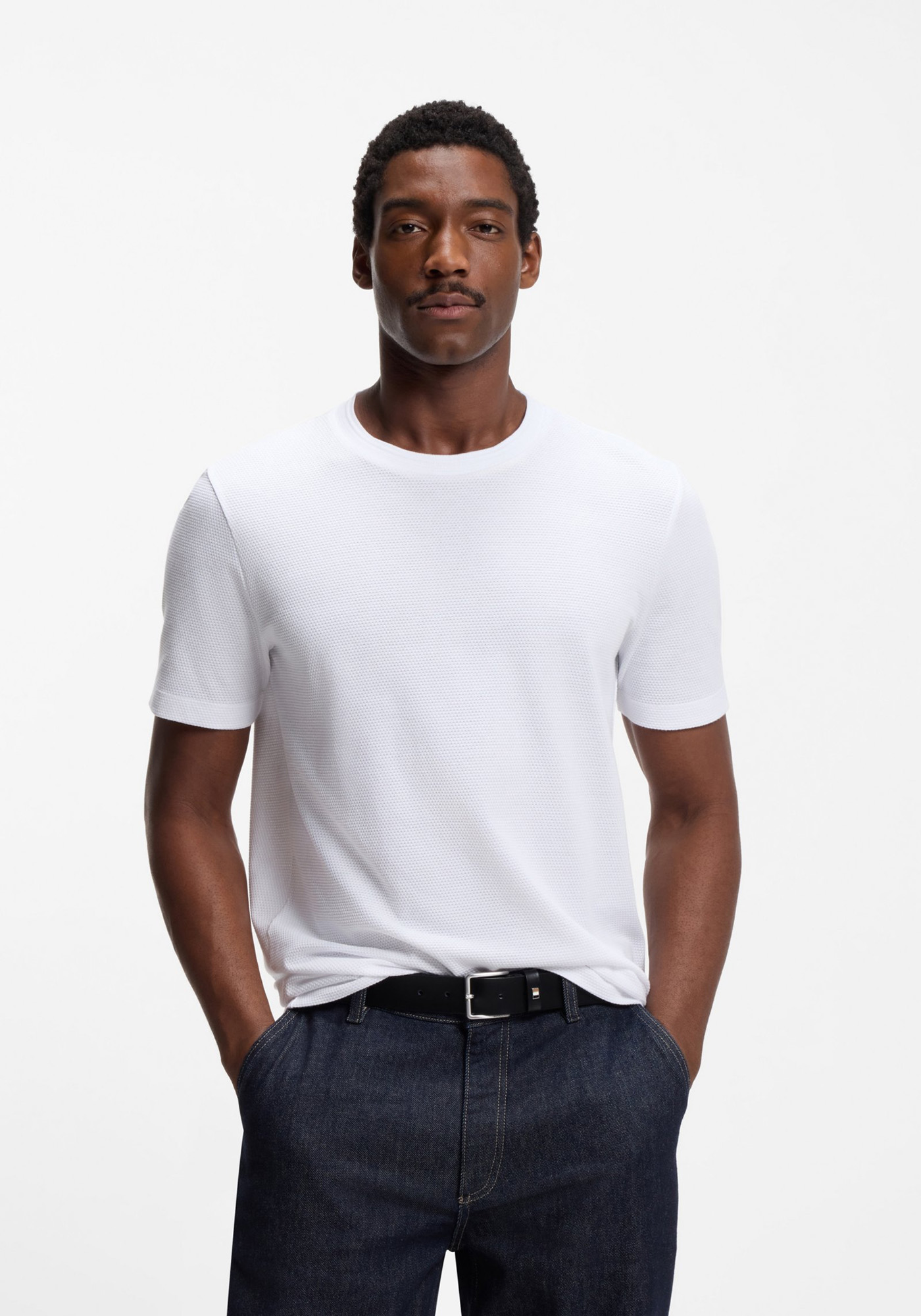 - Bubble-jacquard structure T-shirt in a cotton blend