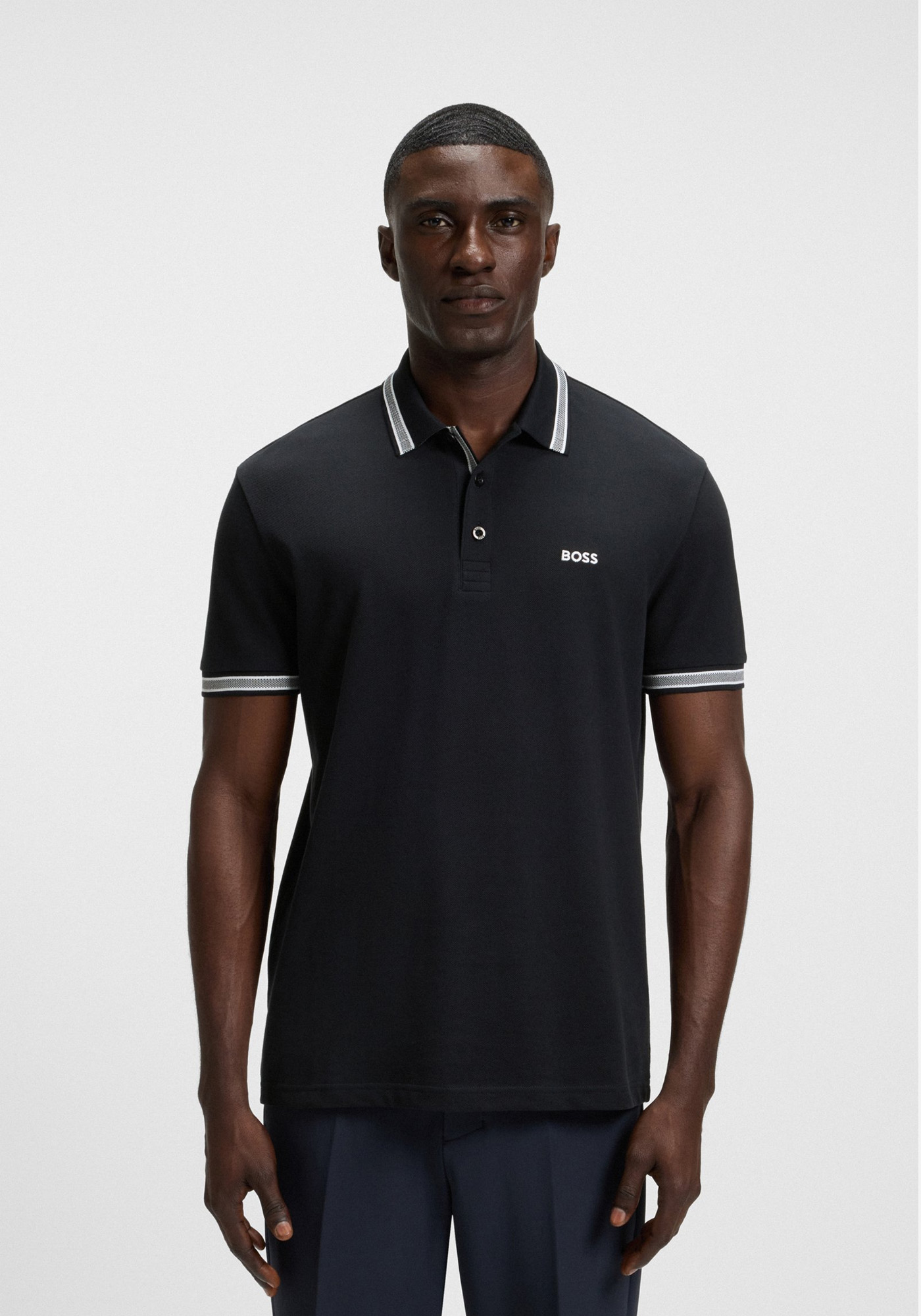 Ανδρική Polo μπλούζα της εταιρείας BOSS. Ανήκει στην Paddy συλλογή της εταιρείας και χαρακτηρίζεται από τις ribbed λεπτομέρειες στον γιακά με πολύχρωμη ρίγα. Είναι μονόχρωμη , σε Regular γραμμή, από απαλό pique ύφασμα υψηλής ποιότητας, ενώ το λογότυπο της εταιρείας είναι κεντημένο στο ύψος του στήθους.