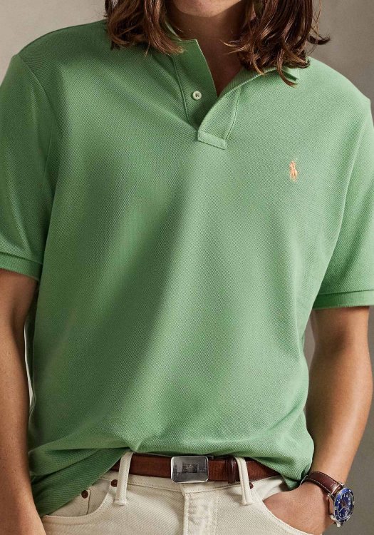 Ανδρική polo μπλούζα της εταιρείας Polo Ralph Lauren. Ανήκει στην Mesh Polo συλλογή και χαρακτηρίζεται από τον minimal σχεδιασμό. Διακοσμείται με ribbed λεπτομέρειες στο γιακά και τα μανίκια, ενώ το λογότυπό βρίσκεται κεντημένο στο στήθος.