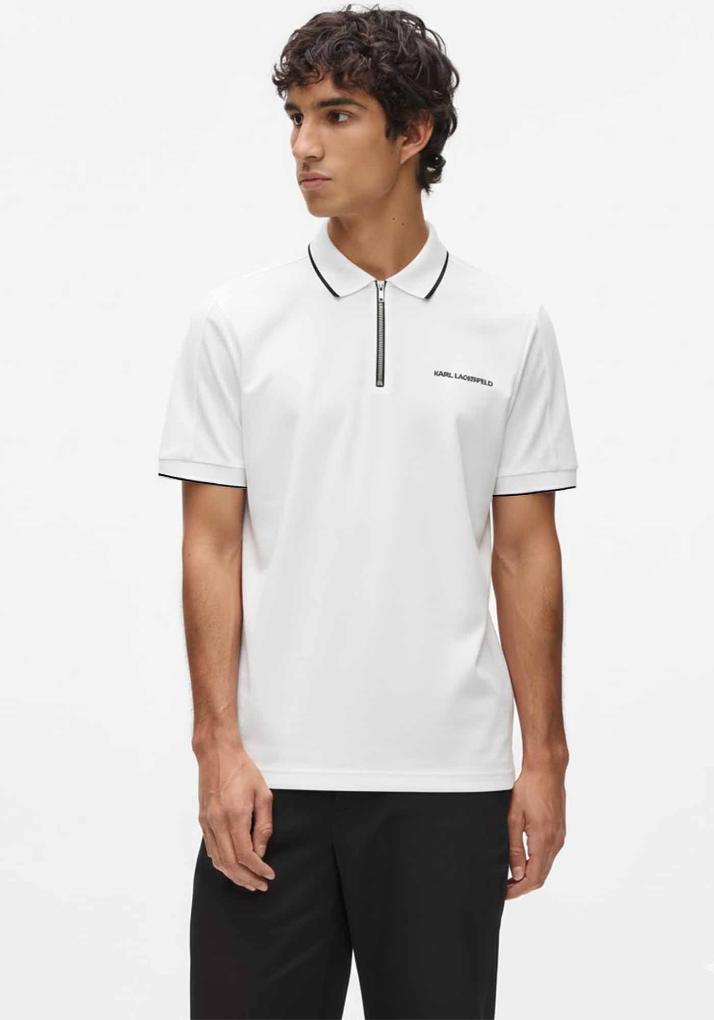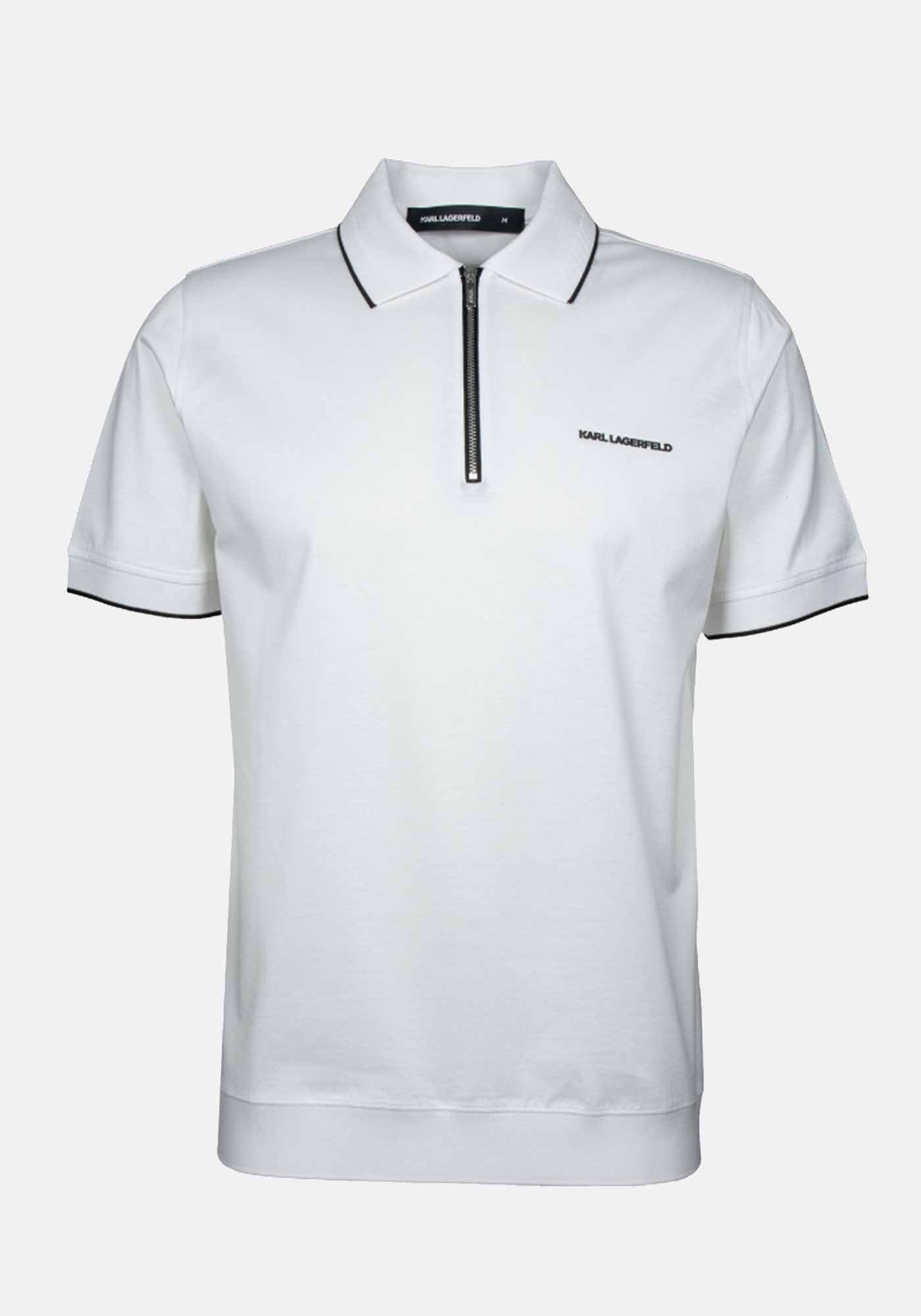 Ανδρική Polo της εταιρείας Karl Lagerfeld. Ανήκει στην Zip Polo συλλογή της εταιρείας και χαρακτηρίζεται από το zip tape στην θέση των κουμπιών. Είναι από απαλό ύφασμα υψηλής ποιότητας, μονόχρωμο με ribbed γιακά και σε άνετη γραμμή. Τέλος, διακοσμείται με το brandname της εταιρείας, που βρίσκεται στο ύψος του στήθους.