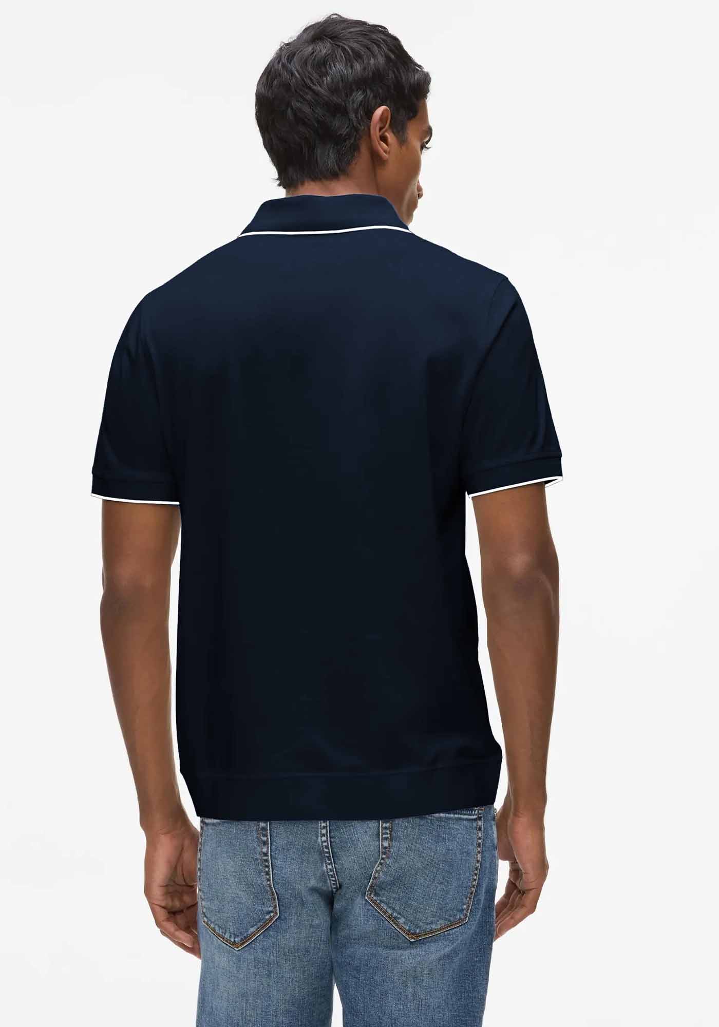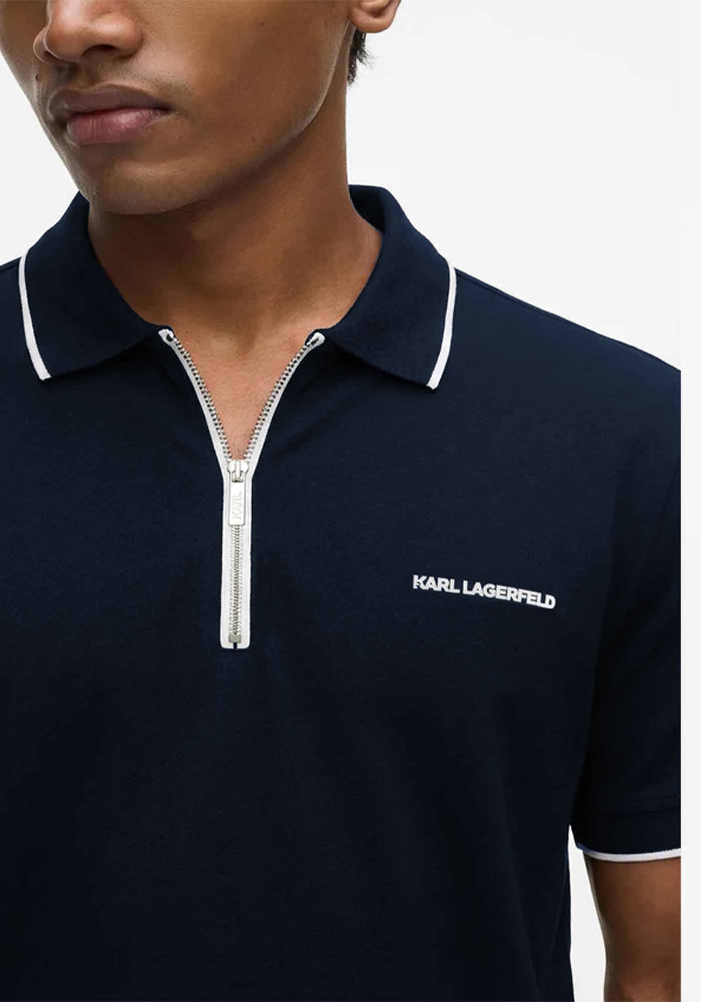 Ανδρική Polo της εταιρείας Karl Lagerfeld. Ανήκει στην Zip Polo συλλογή της εταιρείας και χαρακτηρίζεται από το zip tape στην θέση των κουμπιών. Είναι από απαλό ύφασμα υψηλής ποιότητας, μονόχρωμο με ribbed γιακά και σε άνετη γραμμή. Τέλος, διακοσμείται με το brandname της εταιρείας, που βρίσκεται στο ύψος του στήθους.
