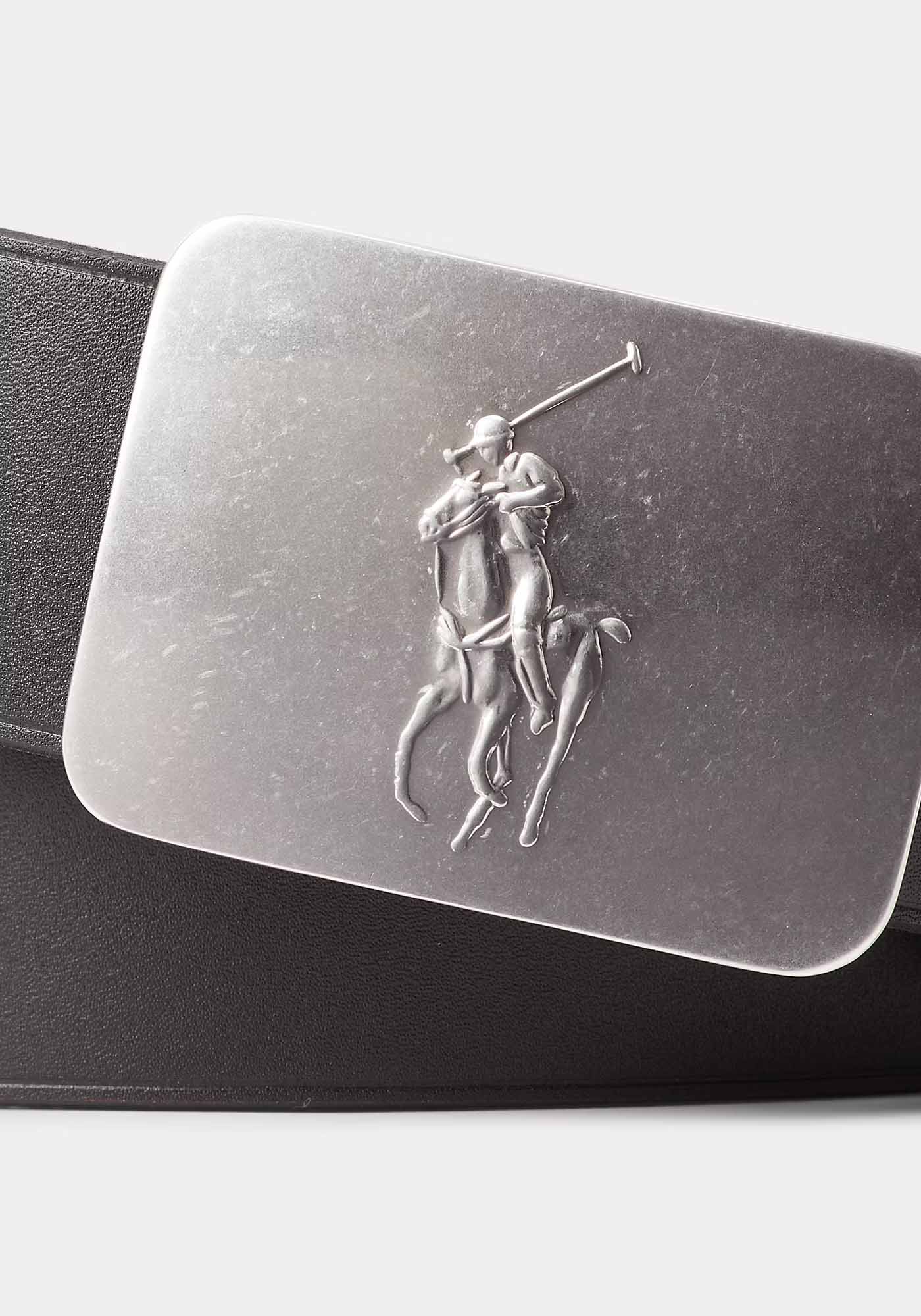 - Single-prong brass buckle embossed with Ralph Lauren's signature Pony.