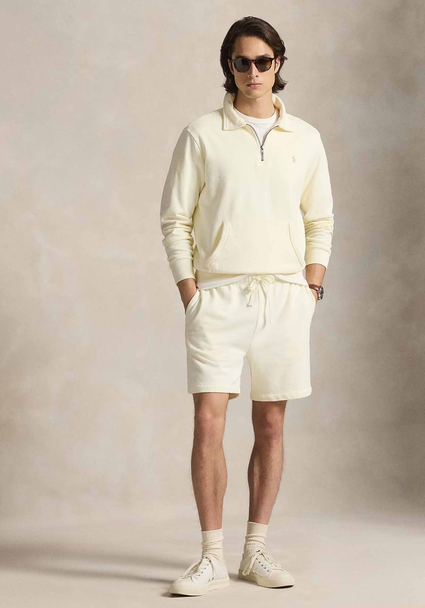 Ανδρική βερμούδα της εταιρείας Polo Ralph Lauren. Ανήκει στην Fleece Short συλλογή και είναι σε κανονική γραμμή, ενώ το λογότυπο είναι τυπωμένο στο ύψος του μηρού. Διαθέτει λάστιχο στην μέση που δένει με κορδόνι για πιο σταθερό κράτημα. Ιδανική επιλογή για πιο casual εμφανίσεις.
