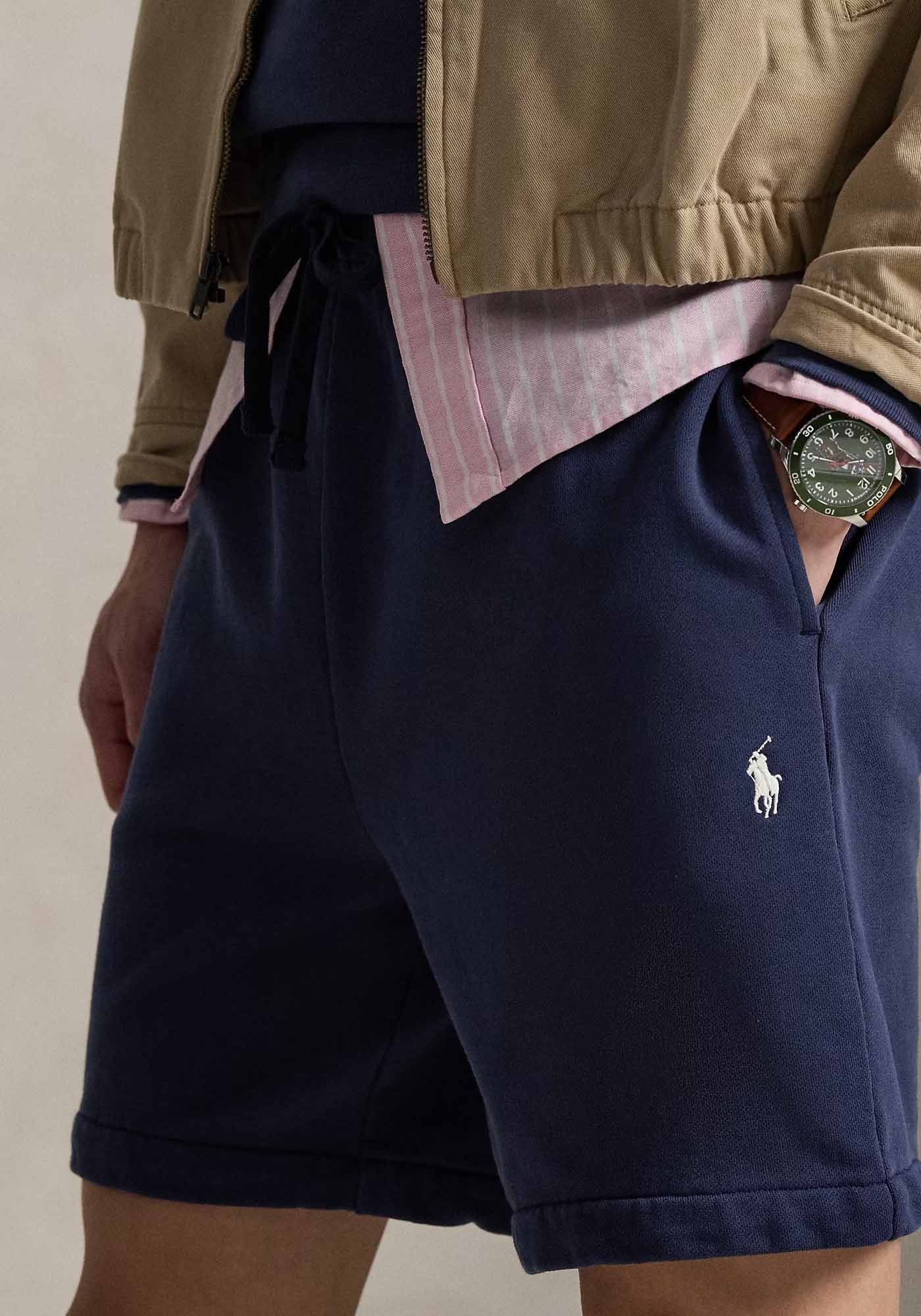 Ανδρική βερμούδα της εταιρείας Polo Ralph Lauren. Ανήκει στην Fleece Short συλλογή και είναι σε κανονική γραμμή, ενώ το λογότυπο είναι τυπωμένο στο ύψος του μηρού. Διαθέτει λάστιχο στην μέση που δένει με κορδόνι για πιο σταθερό κράτημα. Ιδανική επιλογή για πιο casual εμφανίσεις.