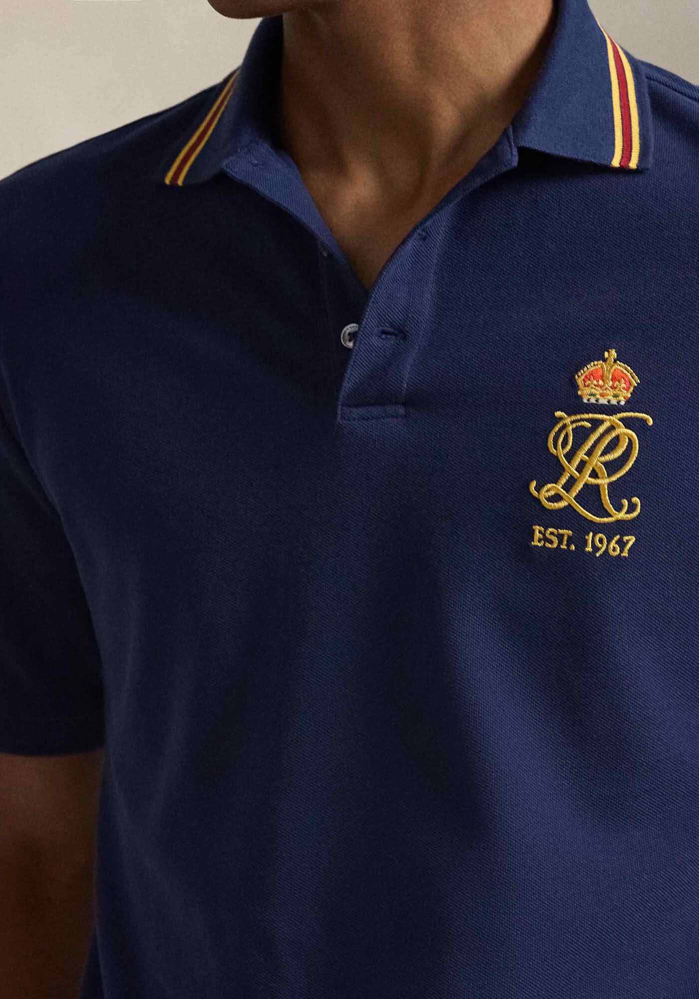 - A crown, "RL" script and "Est. 1967" embroidered on the left chest.