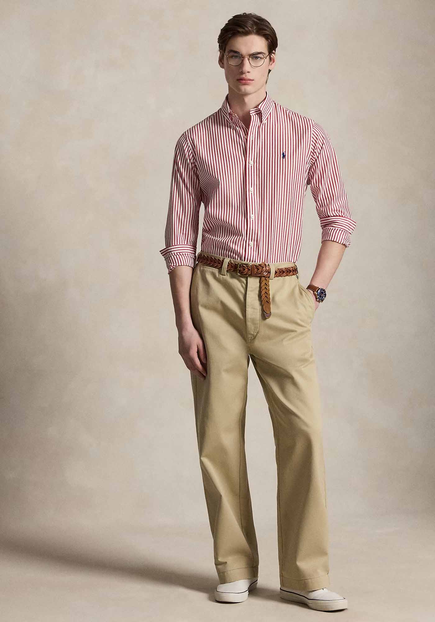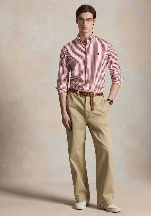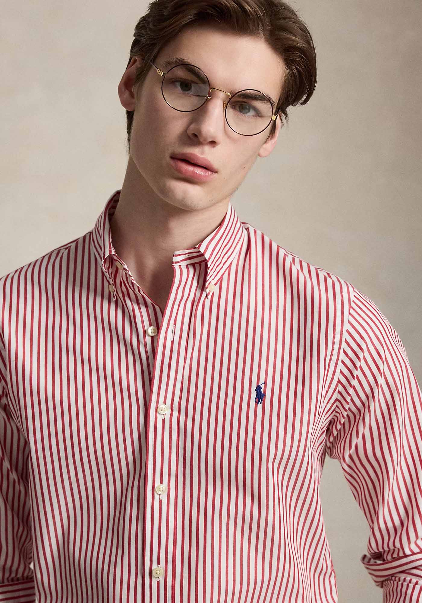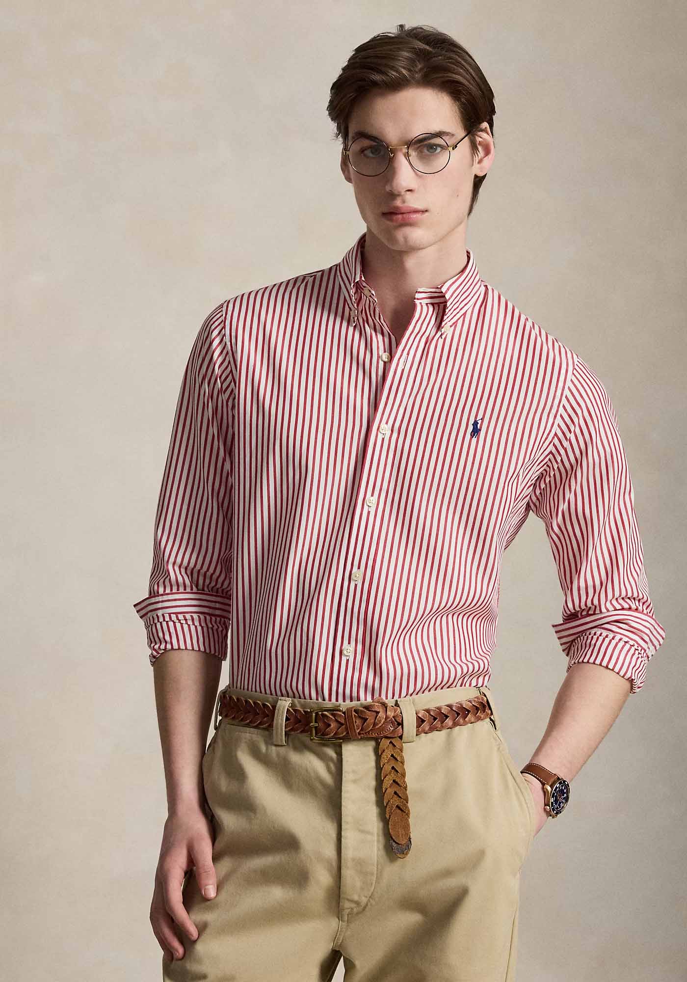 Ανδρικό μακρυμάνικο πουκάμισο από την εταιρεία Polo Ralph Lauren. Ανήκει στην Striped συλλογή της εταιρείας και χαρακτηρίζεται από το ριγέ σχέδιο σε όλη του την έκταση, που προκαλεί έντονη διχρωμία. Αποτελείται από μαλακό ύφασμα υψηλής ποιότητας και διαθέτει button down , ενώ είναι σε Custom γραμμή. Τέλος, διακοσμείται με το λογότυπο το οποίο είναι κεντημένο στο ύψος του στήθους.