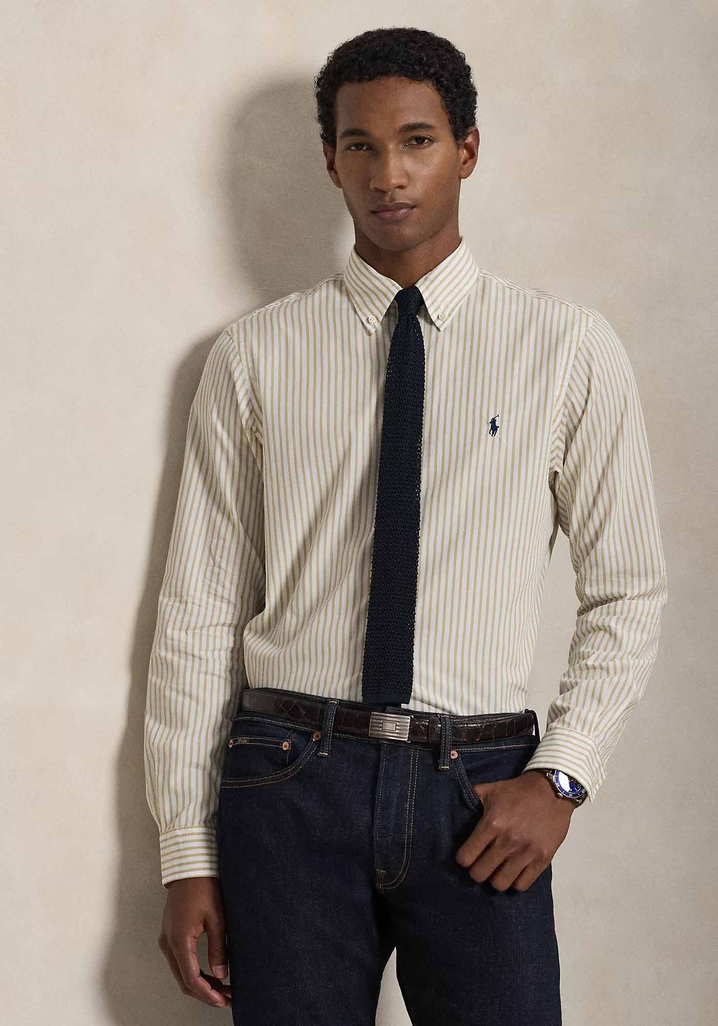 Ανδρικό μακρυμάνικο πουκάμισο από την εταιρεία Polo Ralph Lauren. Ανήκει στην Striped συλλογή της εταιρείας και χαρακτηρίζεται από το ριγέ σχέδιο σε όλη του την έκταση, που προκαλεί έντονη διχρωμία. Αποτελείται από μαλακό ύφασμα υψηλής ποιότητας και διαθέτει button down , ενώ είναι σε Custom γραμμή. Τέλος, διακοσμείται με το λογότυπο το οποίο είναι κεντημένο στο ύψος του στήθους.