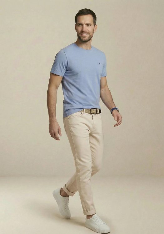 Ανδρική μπλούζα της εταιρείας Fynch Hatton. Ανήκει στην Sanforized cotton συλλογή της εταιρείας και έχει σαν χαρακτηριστικό το λείο της ύφασμα. Είναι σε casual γραμμή, από απαλό ύφασμα υψηλής ποιότητας και διακοσμείται με το λογότυπο της εταιρείας το οποίο είναι κεντημένο στο ύψος του στήθους.