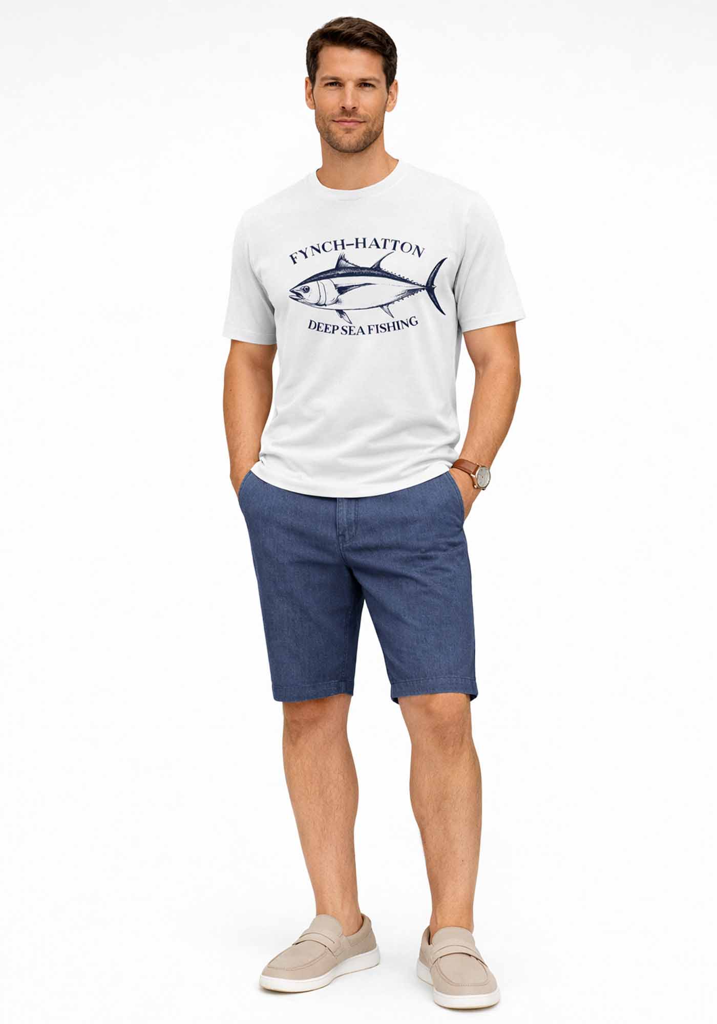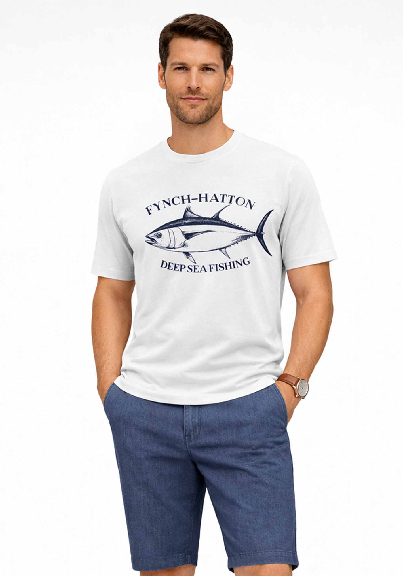 Ανδρική μπλούζα της εταιρείας Fynch Hatton. Ανήκει στην Jersey συλλογή της εταιρείας και χαρακτηρίζεται από το print στο μπροστινό μέρος. Είναι σε Loose γραμμή που τονίζει την σιλουέτα και έχει στρογγυλή λαιμόκοψη.