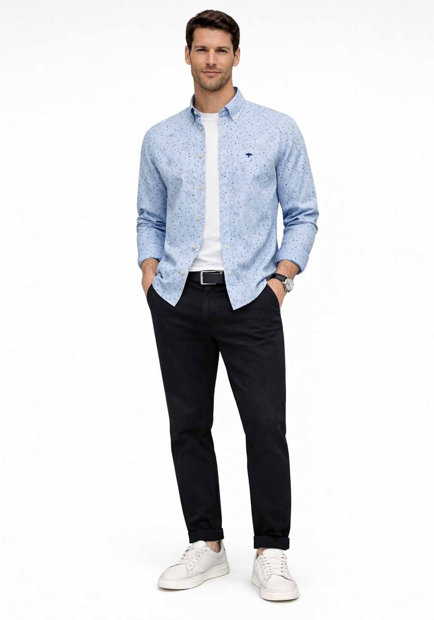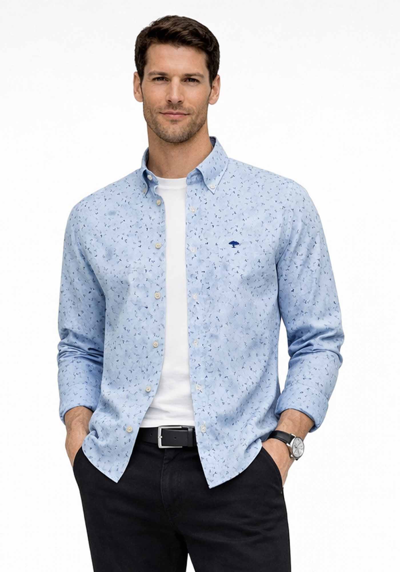 Ανδρικό Πουκάμισο της εταιρείας Fynch Hatton. Ανήκει στην Tree συλλογή της εταιρείας και είναι σε Loose γραμμή, από απαλό ύφασμα υψηλής ποιότητας. Είναι διακοσμημένο με allover print, διαθέτει button down, ενώ το λογότυπο βρίσκεται στο ύψος του στήθους πάνω στην τσέπη.