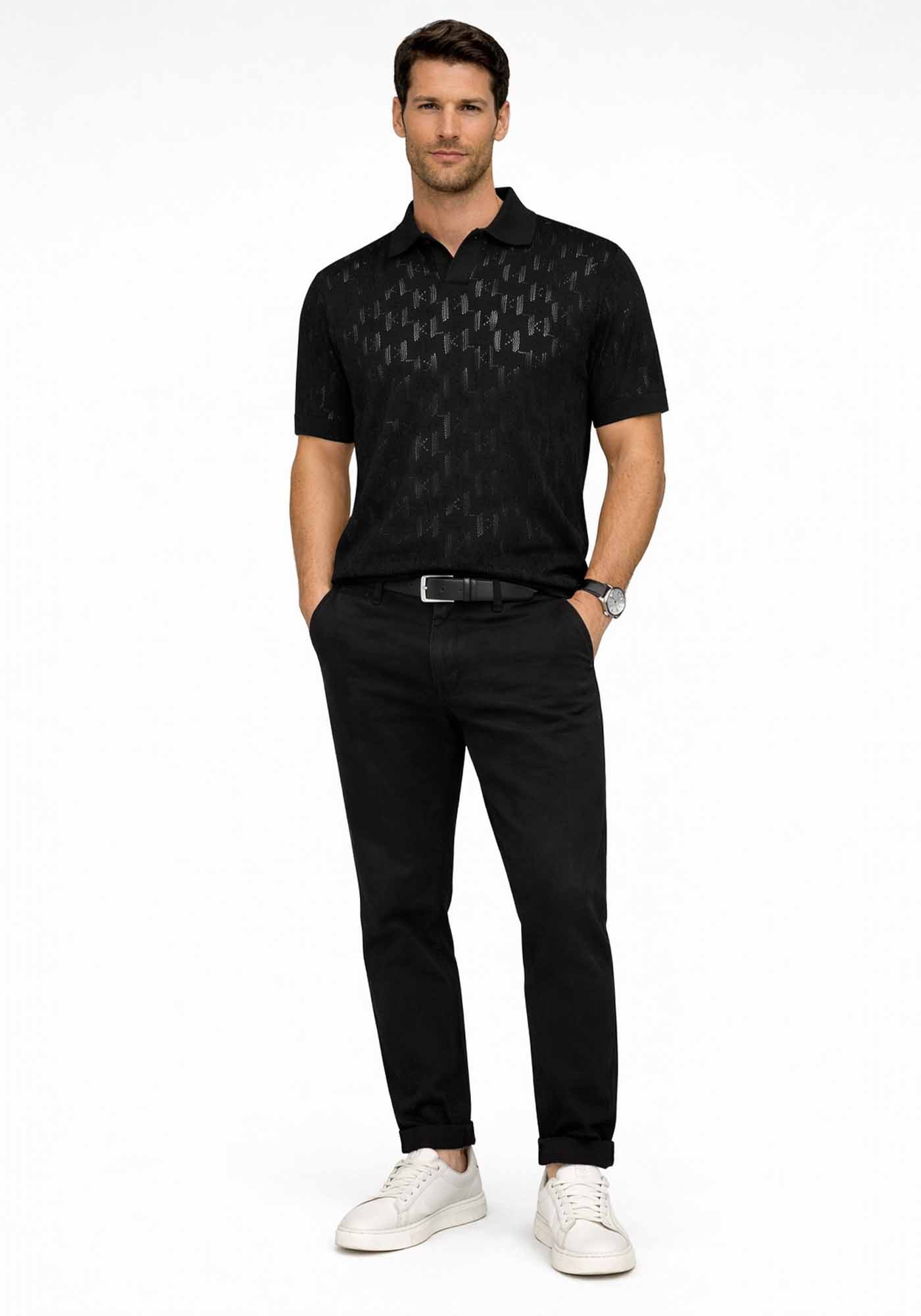 Ανδρική Polo Μπλούζα της εταιρείας Karl Lagerfeld. Ανήκει στην Knit Polo συλλογή και που συνδυάζει μοντέρνα αισθητική και premium λεπτομέρειες. Ξεχωρίζει για το ιδιαίτερο διάτρητο μοτίβο με KL monogram, το οποίο δημιουργεί ένα διακριτικό αλλά ταυτόχρονα δυναμικό pattern σε όλη την επιφάνεια, προσφέροντας ελαφριά αίσθηση και υψηλή διαπνοή. Η μπλούζα διαθέτει αποσπώμενο KL monogram pin στην αριστερή πλευρά, πάνω από το τελείωμα, δίνοντας τη δυνατότητα προσαρμογής του στυλ ανάλογα με την περίσταση. Ο πλεκτός γιακάς και τα κοντά μανίκια ολοκληρώνουν το κομψό urban look, καθιστώντας την ιδανική επιλογή για σύγχρονες casual ή smart-casual εμφανίσεις.