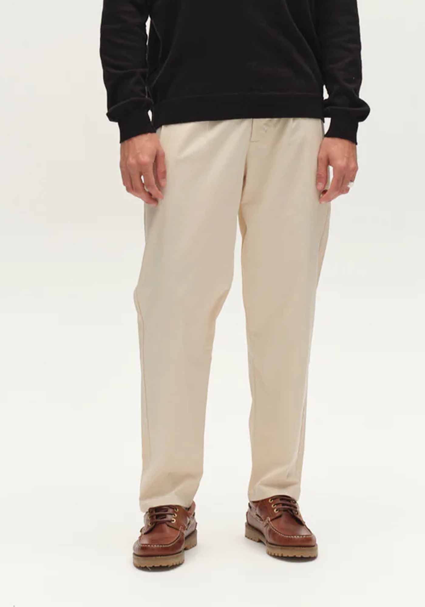 Το cropped μήκος δημιουργεί ένα μοντέρνο και effortless αποτέλεσμα, ιδανικό για smart casual εμφανίσεις. Κατασκευασμένο από stretch twill ύφασμα με garment-dyed επεξεργασία, προσφέρει απαλή υφή, ελαστικότητα και καθημερινή άνεση.