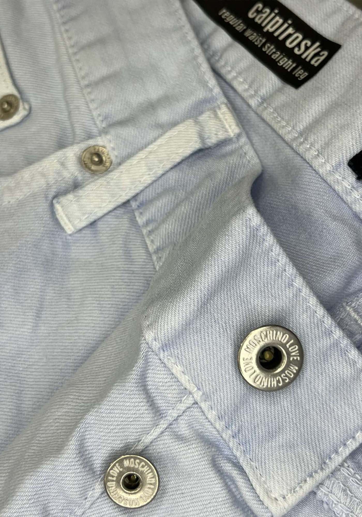 Ανδρικό jean Moschino σε κομψή ανοιχτή απόχρωση, ιδανικό για μοντέρνες casual εμφανίσεις. Κατασκευασμένο από ποιοτικό βαμβακερό denim, προσφέρει άνεση και ανθεκτικότητα στην καθημερινή χρήση.