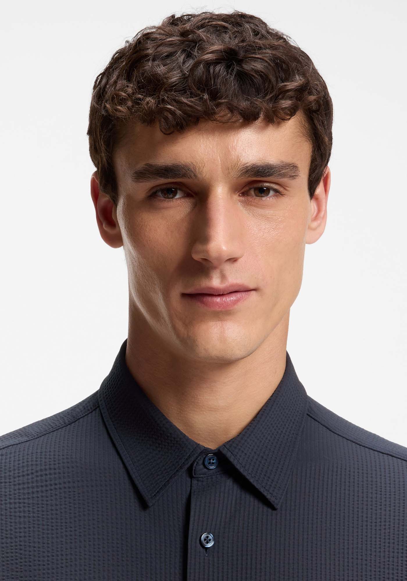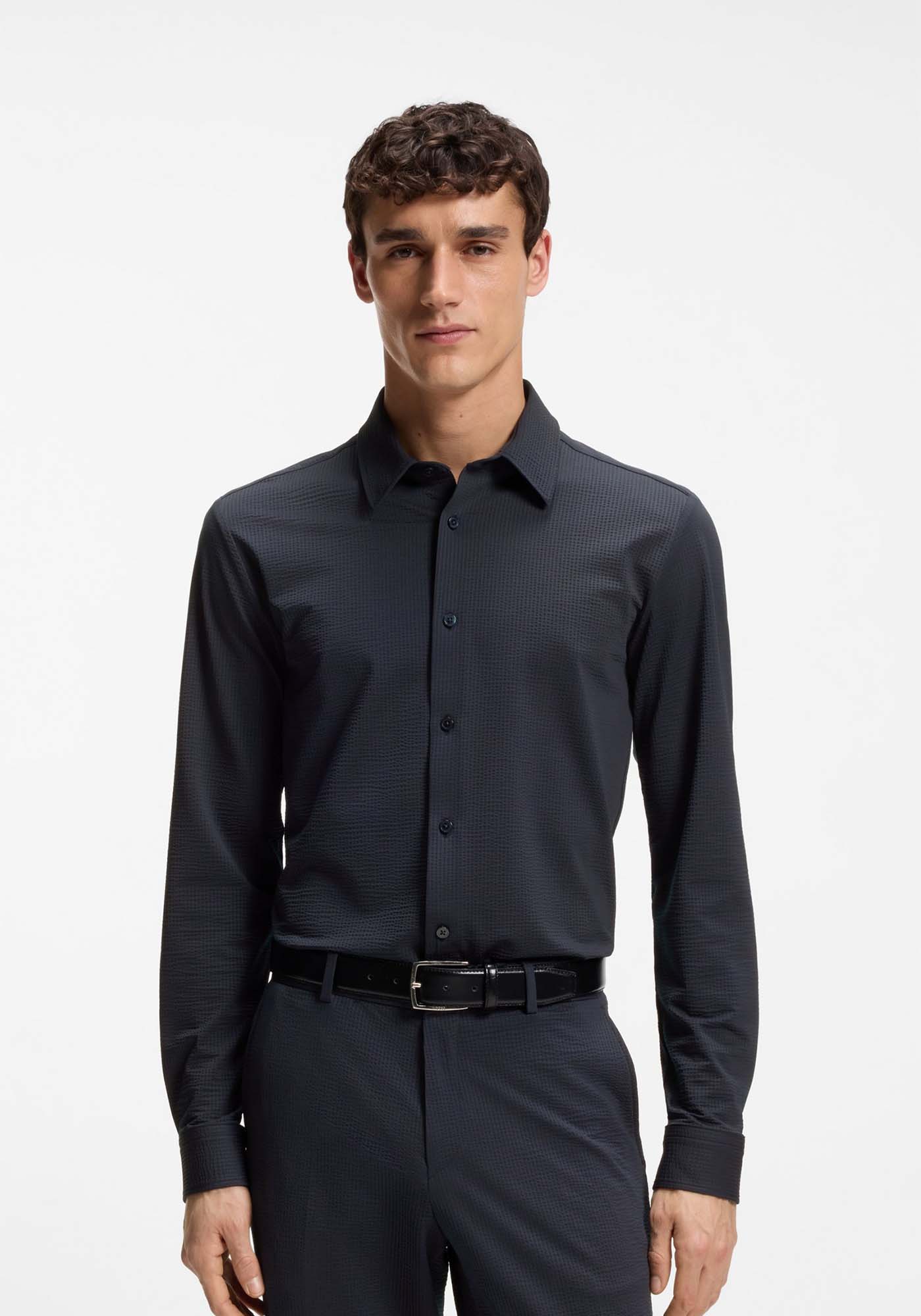 - Slim-fit shirt in Italian performance-stretch seersucker