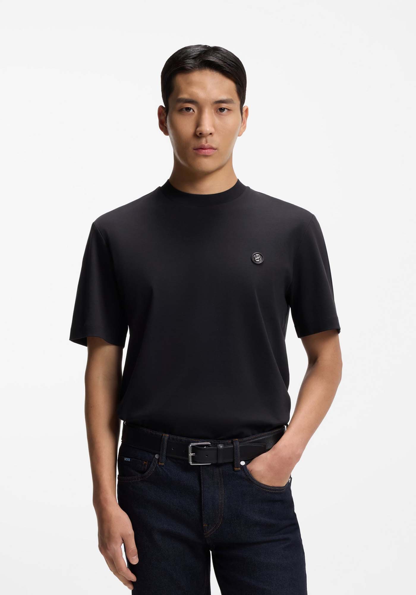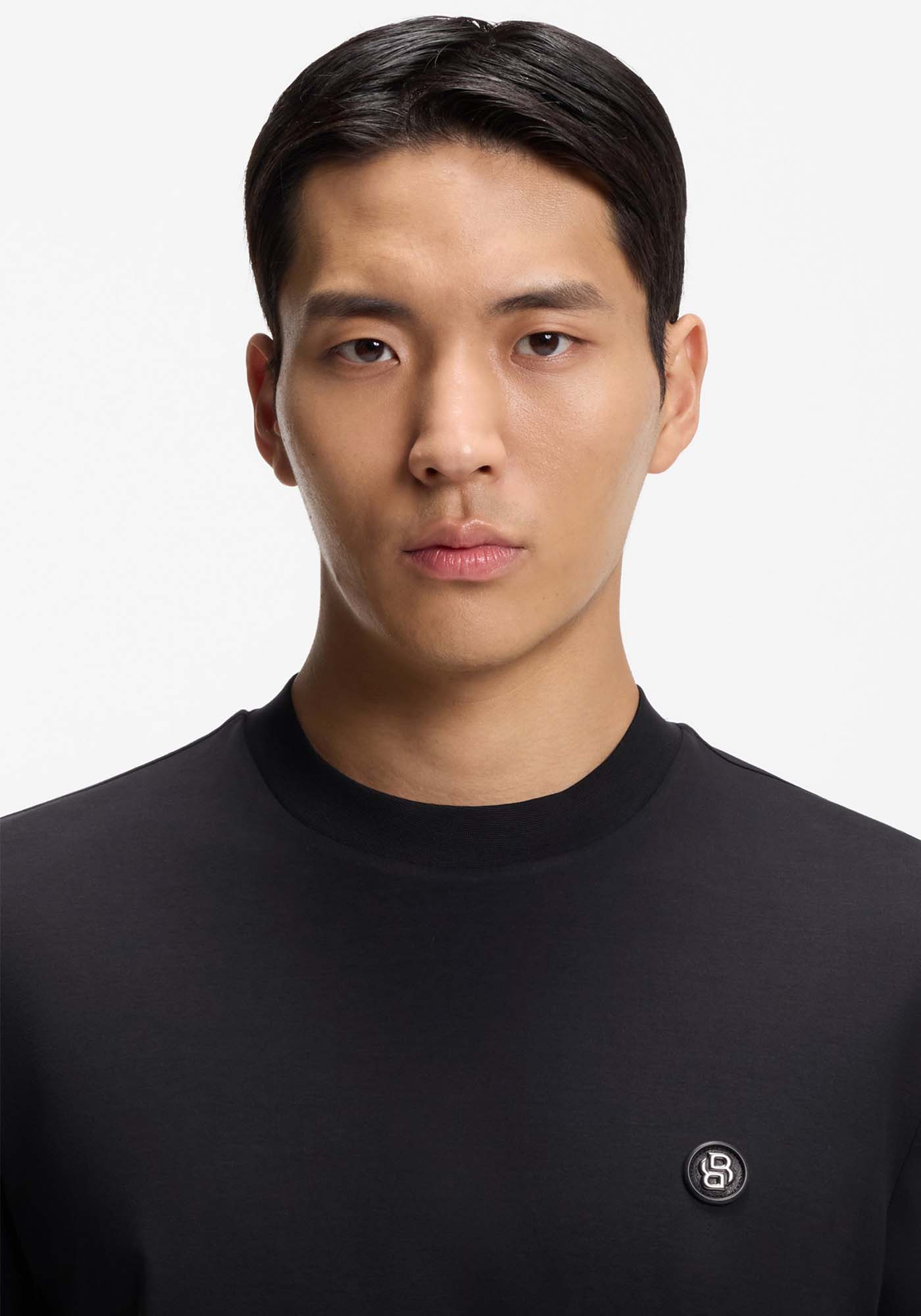 Ανδρικό T-shirt από τη συλλογή BOSS Menswear, που συνδυάζει minimal αισθητική με premium ποιότητα κατασκευής. Κατασκευασμένο από βαμβάκι με εξαιρετικά απαλή mercerized υφή, προσφέρει λεία αίσθηση, διακριτική λάμψη και υψηλή άνεση καθ’ όλη τη διάρκεια της ημέρας. Διακοσμείται με μεταλλικό μονόγραμμα Double B στο στήθος, προσθέτοντας ένα κομψό signature στοιχείο.