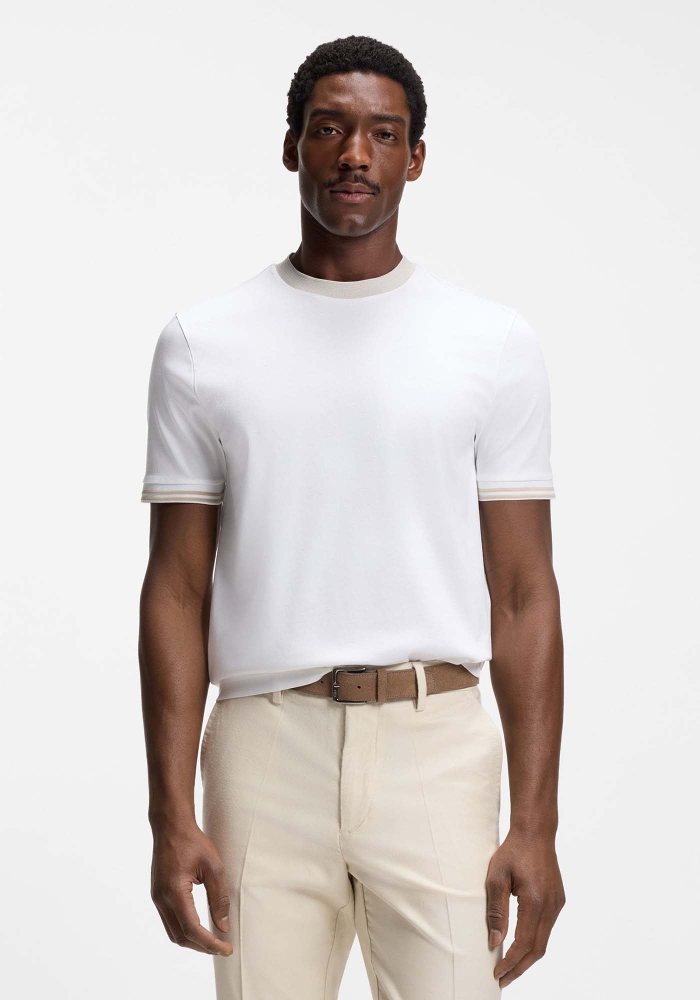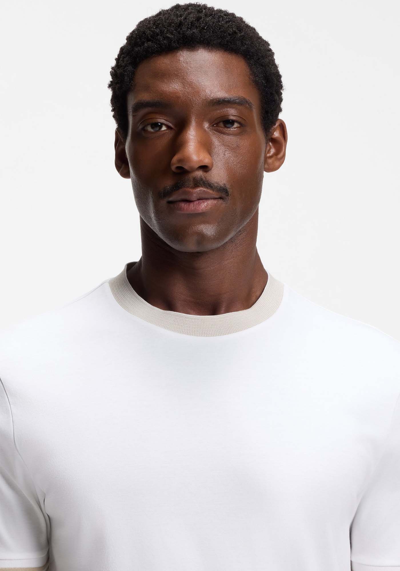 - Contrast-tipping slim-fit T-shirt in mercerised cotton