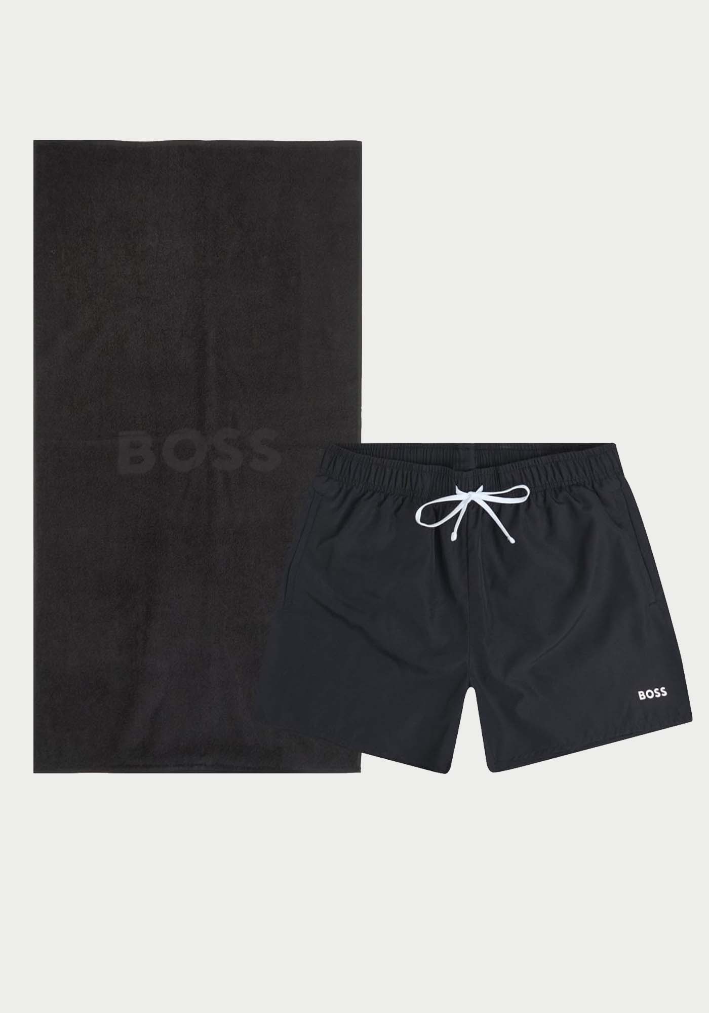 Σετ παραλίας BOSS που περιλαμβάνει ανδρικό μαγιό και πετσέτα, ιδανικό για ολοκληρωμένες καλοκαιρινές εμφανίσεις. Το μαγιό διαθέτει ελαστική μέση με ρυθμιζόμενο κορδόνι για άνετη και σταθερή εφαρμογή, ενώ είναι κατασκευασμένο από ελαφρύ ύφασμα που στεγνώνει γρήγορα, προσφέροντας ελευθερία κινήσεων. Το διακριτικό λογότυπο BOSS στο τελείωμα χαρίζει signature αισθητική.