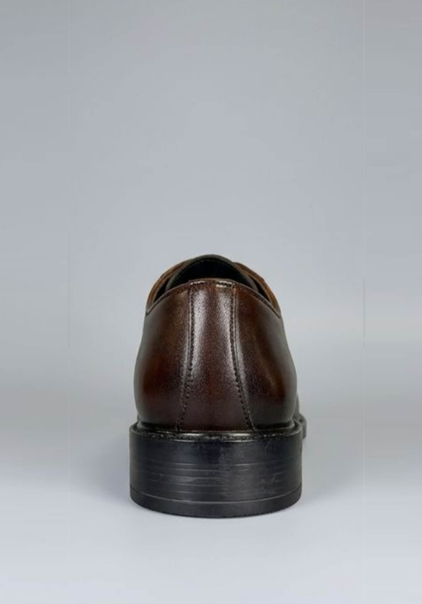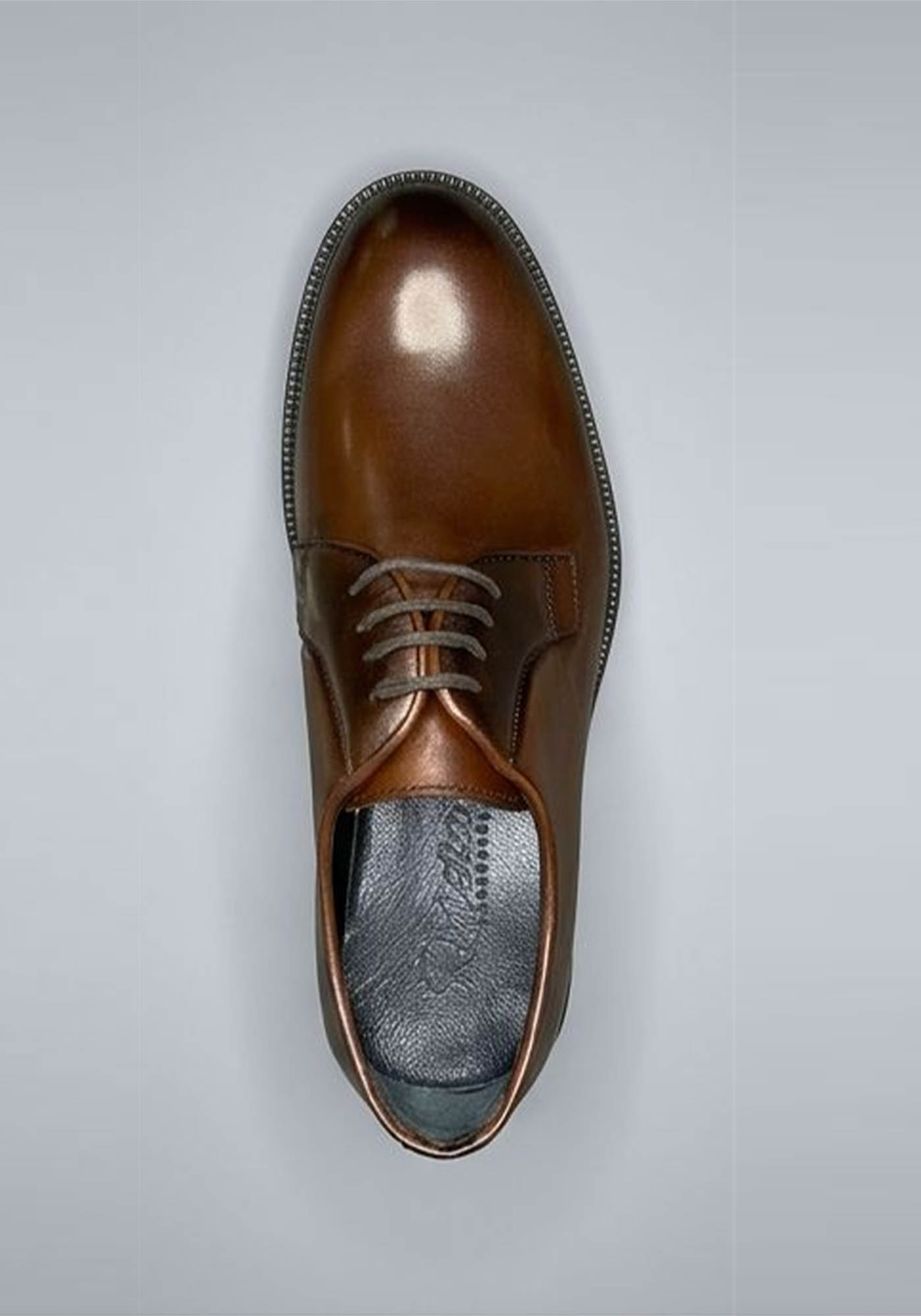 Ανδρικό παπούτσι τύπου derby που αποπνέει κομψότητα και διαχρονικό στυλ. Κατασκευασμένο από υψηλής ποιότητας δέρμα σε ζεστή καφέ (tabacco) απόχρωση, ξεχωρίζει για το φυσικό του φινίρισμα και τις διακριτικές τονικές διαβαθμίσεις που προσδίδουν βάθος και χαρακτήρα.