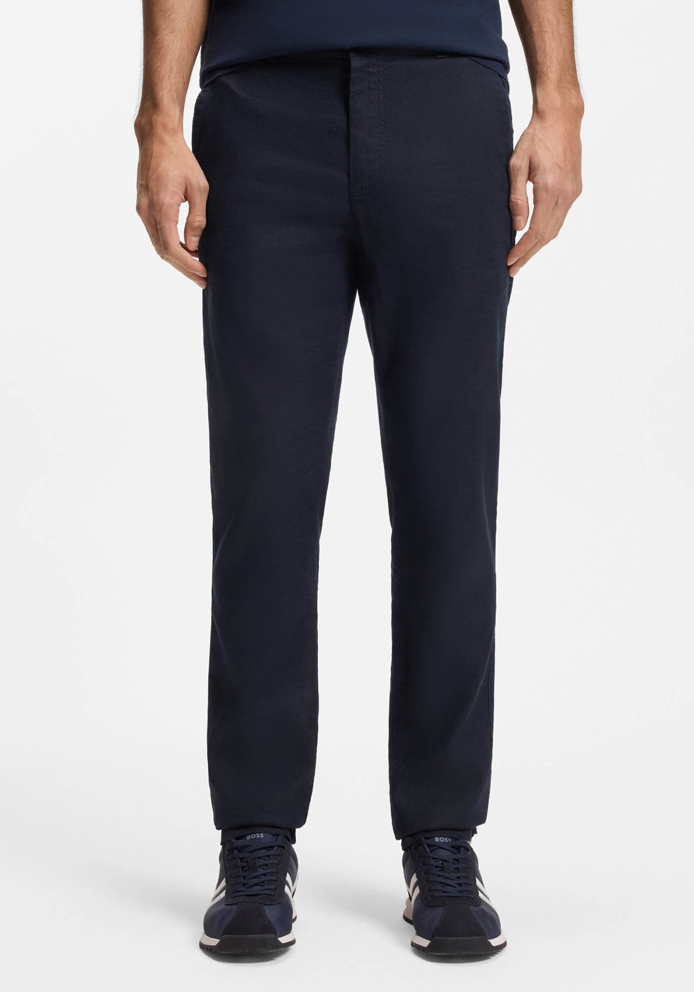 Αναβάθμισε το καθημερινό σου στυλ με αυτό το παντελόνι από τη BOSS Menswear, σχεδιασμένο για άνεση και ευελιξία. Κατασκευασμένο από ελαφρύ linen blend ύφασμα, αποτελεί ιδανική επιλογή για τις πιο ζεστές ημέρες, προσφέροντας δροσερή αίσθηση και κομψή εμφάνιση.