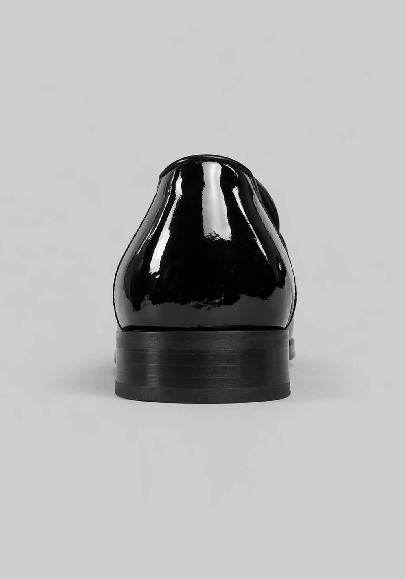 Κομψό ανδρικό loafer σε μαύρη απόχρωση, κατασκευασμένο από λουστρίνι υψηλής ποιότητας που χαρίζει έντονη λάμψη και πολυτελή αισθητική. Ο minimal σχεδιασμός του, με καθαρές γραμμές και διακριτική ραφή, το καθιστά ιδανική επιλογή για formal εμφανίσεις αλλά και για πιο μοντέρνα βραδινά looks.
