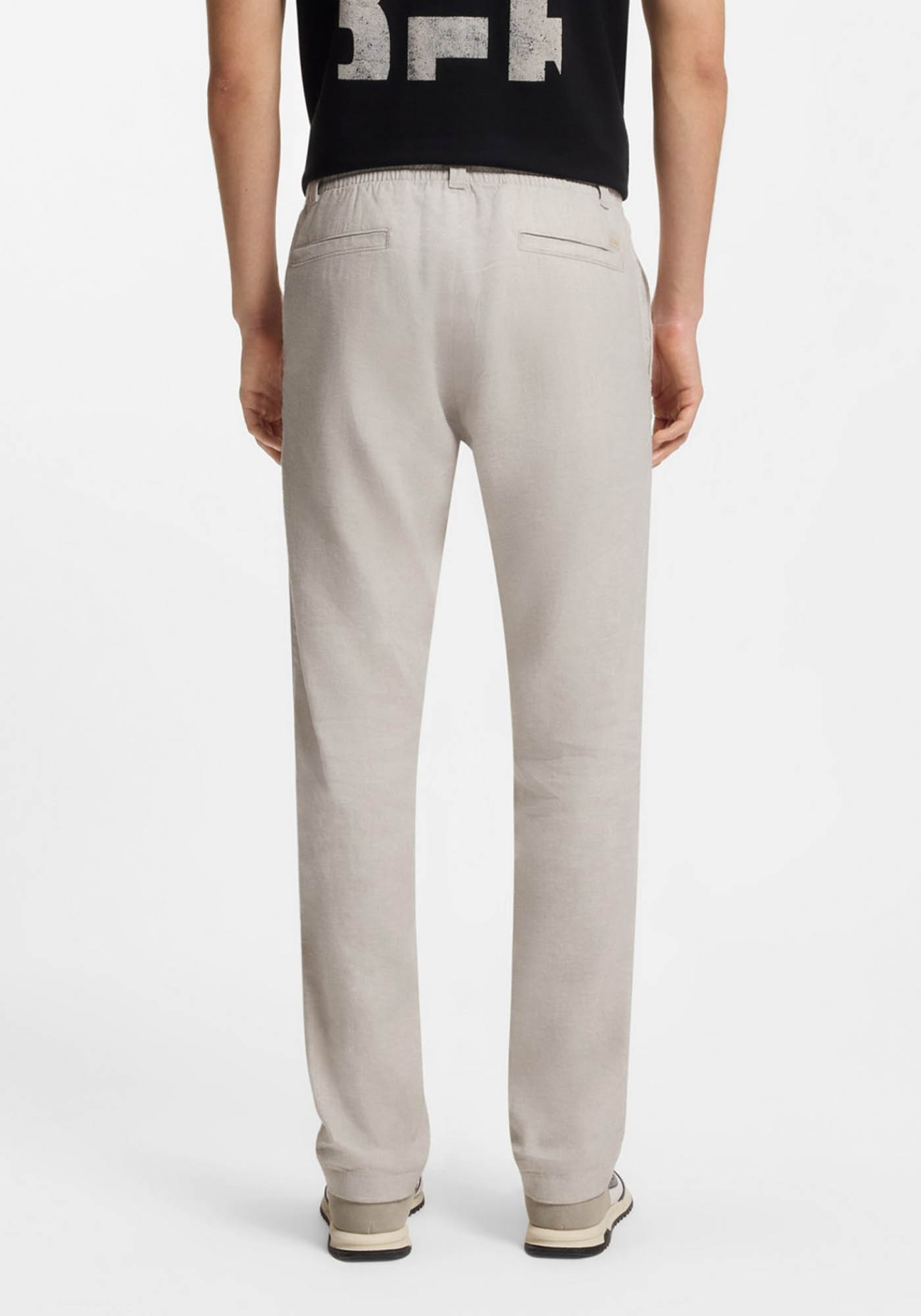 Αναβάθμισε το καθημερινό σου στυλ με αυτό το παντελόνι από τη BOSS Menswear, σχεδιασμένο για άνεση και ευελιξία. Κατασκευασμένο από ελαφρύ linen blend ύφασμα, αποτελεί ιδανική επιλογή για τις πιο ζεστές ημέρες, προσφέροντας δροσερή αίσθηση και κομψή εμφάνιση.
