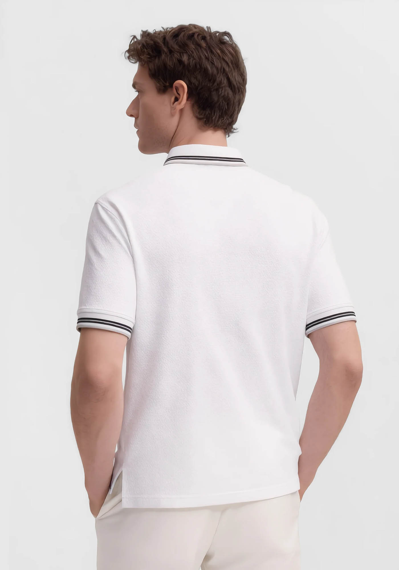 - Κλασικός polo γιακάς με διακριτική ριγέ λεπτομέρεια
