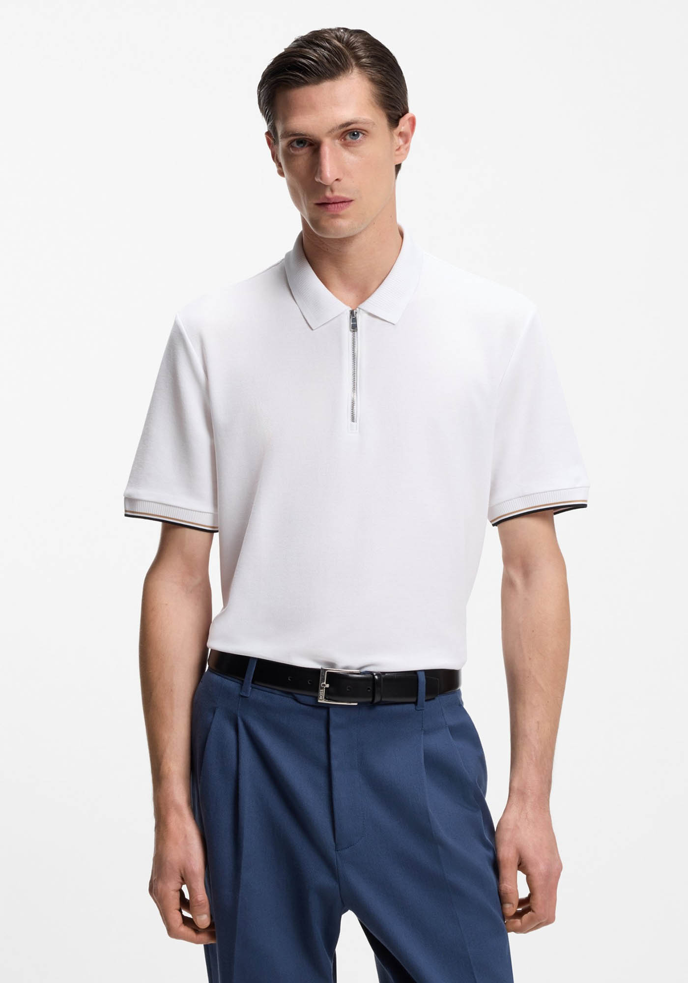 Μία sporty και ταυτόχρονα κομψή επιλογή, αυτή η polo μπλούζα από τη BOSS Menswear συνδυάζει άνεση και σύγχρονο design. Είναι κατασκευασμένη από απαλό βαμβάκι με honeycomb piqué ύφανση, προσφέροντας διαπνοή και ευχάριστη αίσθηση καθ’ όλη τη διάρκεια της ημέρας. Το φερμουάρ στο λαιμό δίνει ένα πιο μοντέρνο twist στο κλασικό polo, ενώ οι signature ρίγες στις μανσέτες ολοκληρώνουν το look με διακριτική ταυτότητα brand.