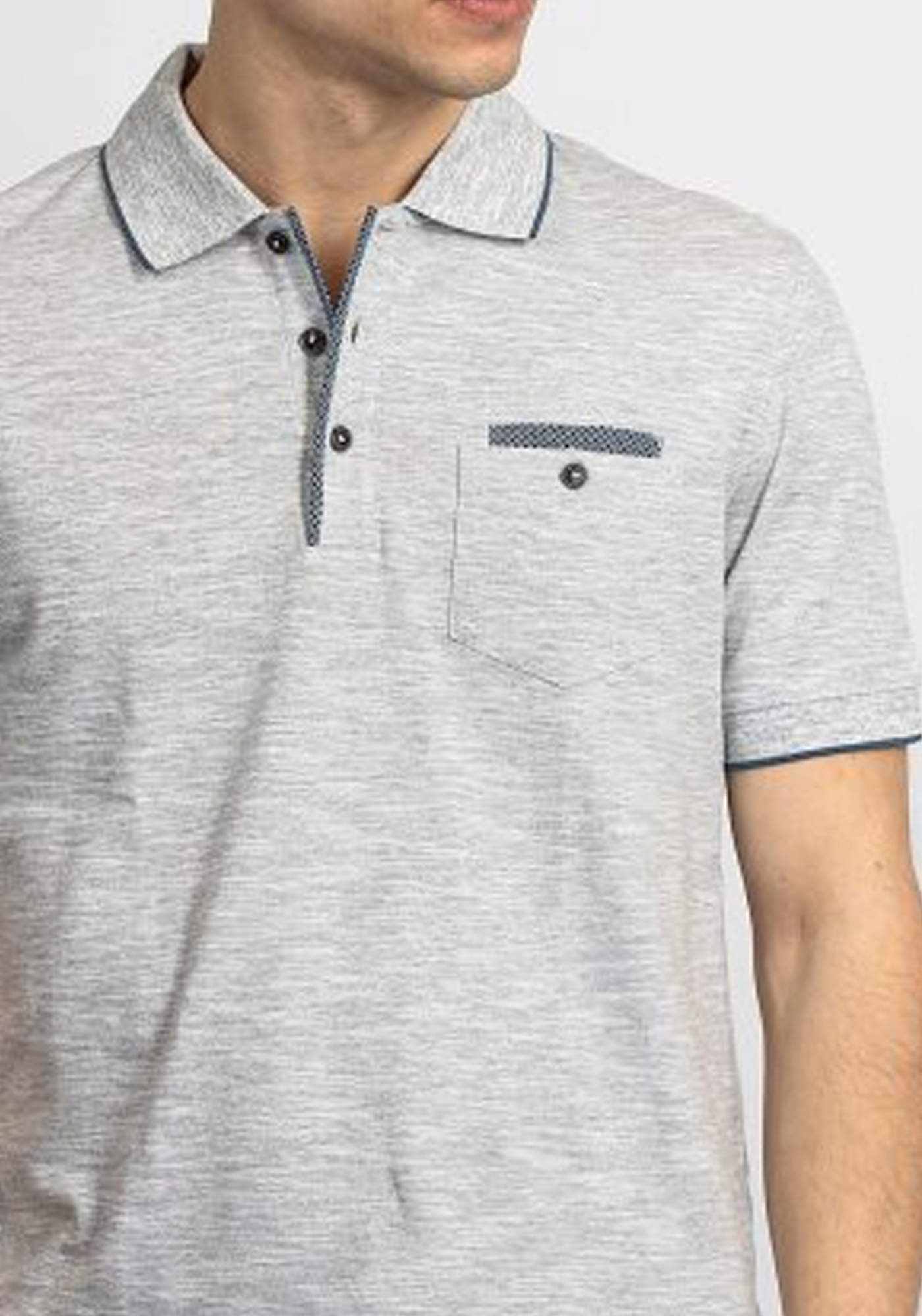 - Neckline: Polo collar