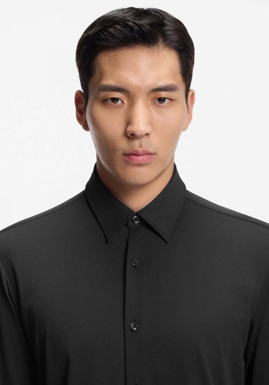 - Button-down point collar. Buttoned placket.