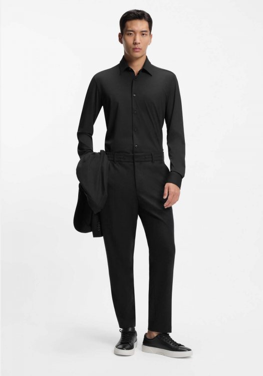 - Custom Fit: a trim silhouette in between our Classic Fit and Slim Fit. Tailored through the waist.