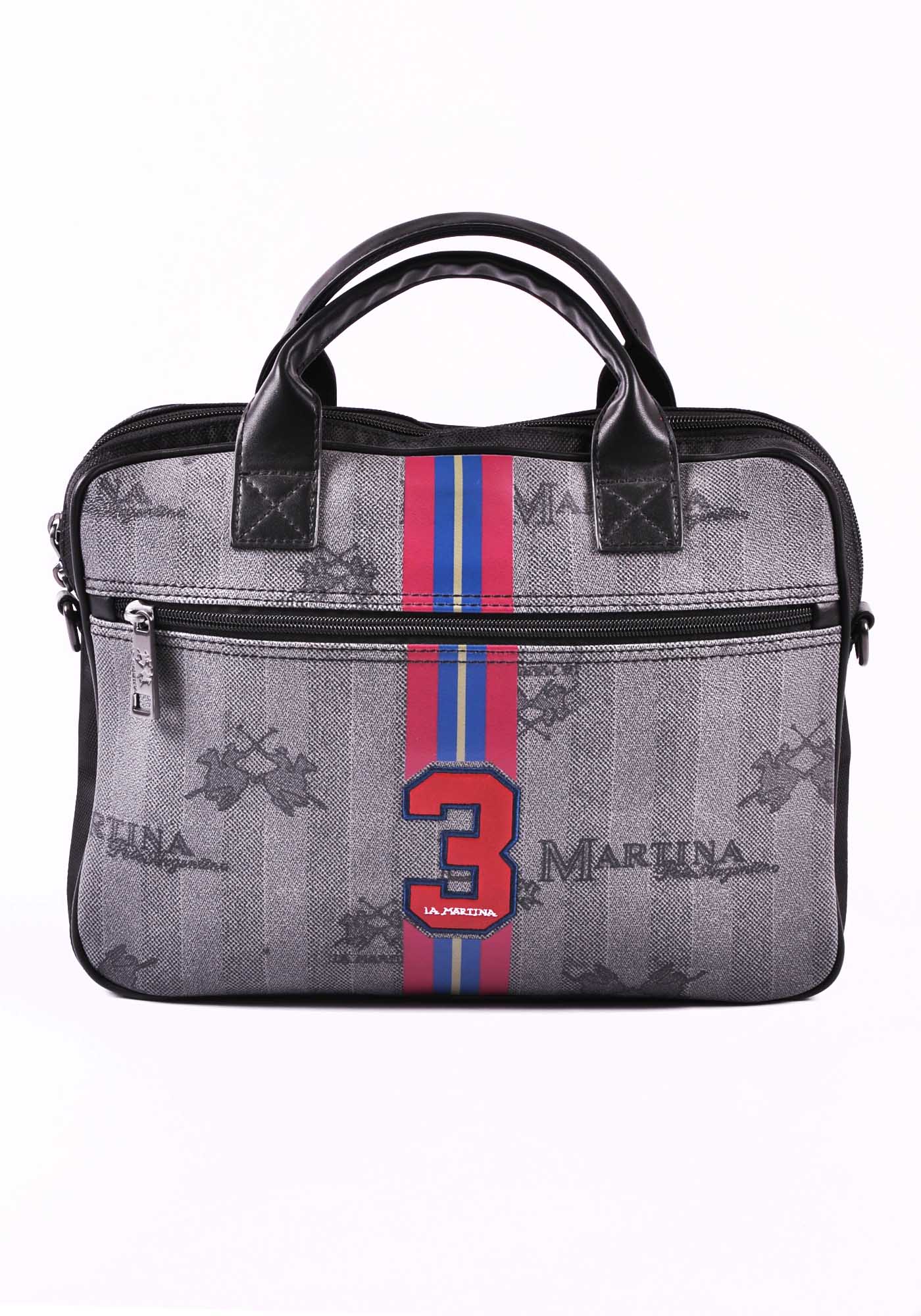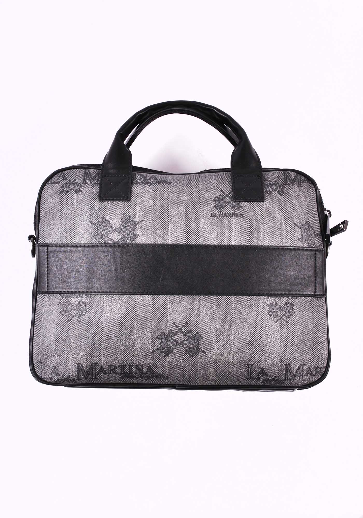 The men's briefcase from the Reconquista line by La Martina is in genuine leather. The double handles and the adjustable and detachable shoulder belt make carrying even more comfortable. Equipped with three front pockets and a back pocket with a magnetic closure. With a pen compartment and practical compartments for storing smartphones and other useful items during the working day on the inside. The ideal briefcase for the man who loves to combine practicality with elegance.