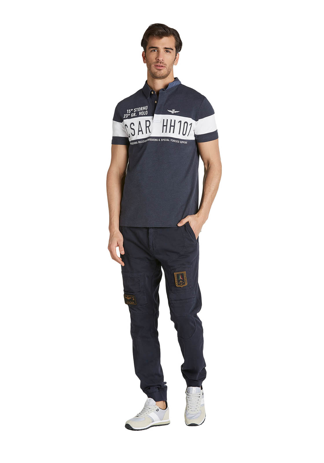 Ανδρική polo μπλούζα της εταιρείας Aeronautica Militare. Είναι εμπνευσμένο από το HH-101A αεροσκάφος, το λογότυπο του αετού που είναι κεντημένο στο ύψος του στήθους. Tέλος, έχει κανονική - άνετη γραμμή. Ιδανική basic επιλογή για casual εμφανίσεις.